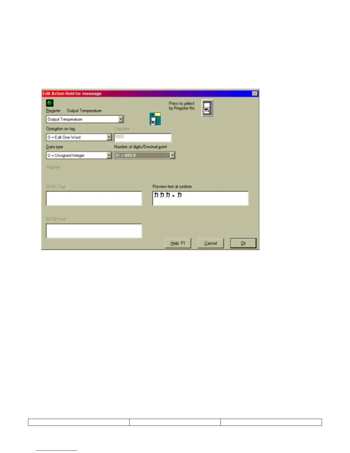 for changing registers, not coils. Use the function keys of a normal screen for changing coils.)
