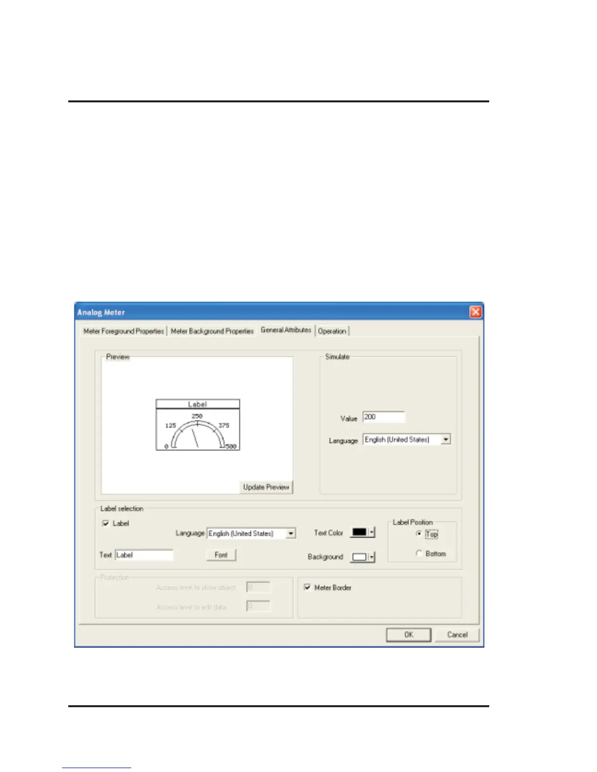 6. Label position : If the “Top” option is selected, the label is shown above the meter. If the