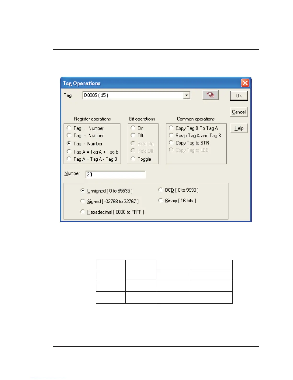 Tag Type Operation Number Result