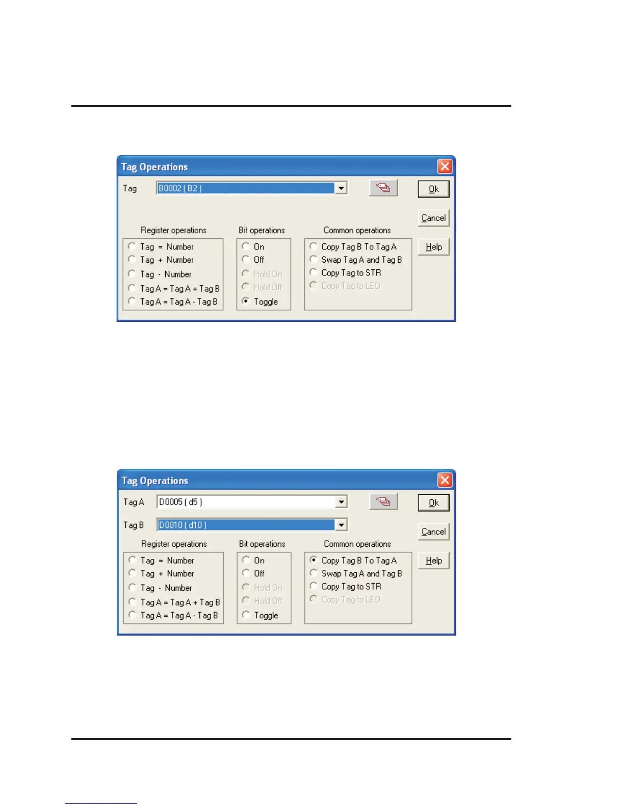 This task is executed on register tags and coil or bit-addressed register listed under Tag option. Both tag