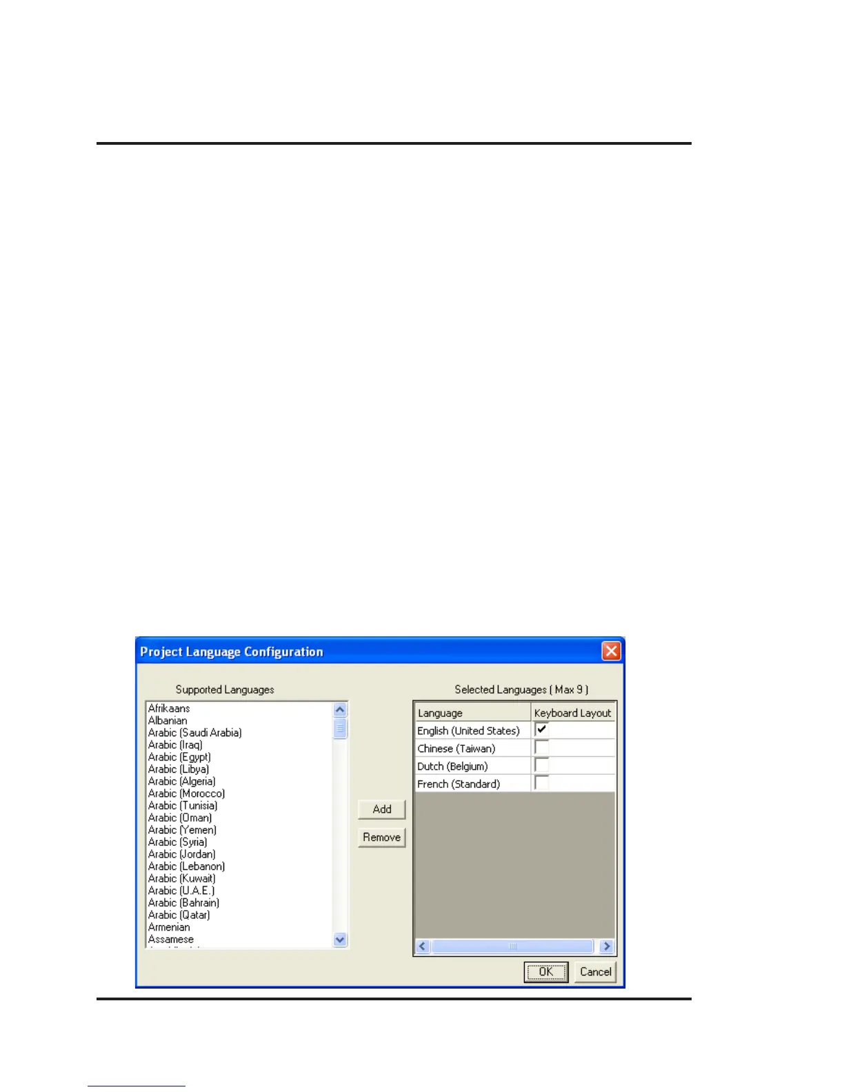 Following screen shows how to configure multiple languages for a project. Select Configure Language