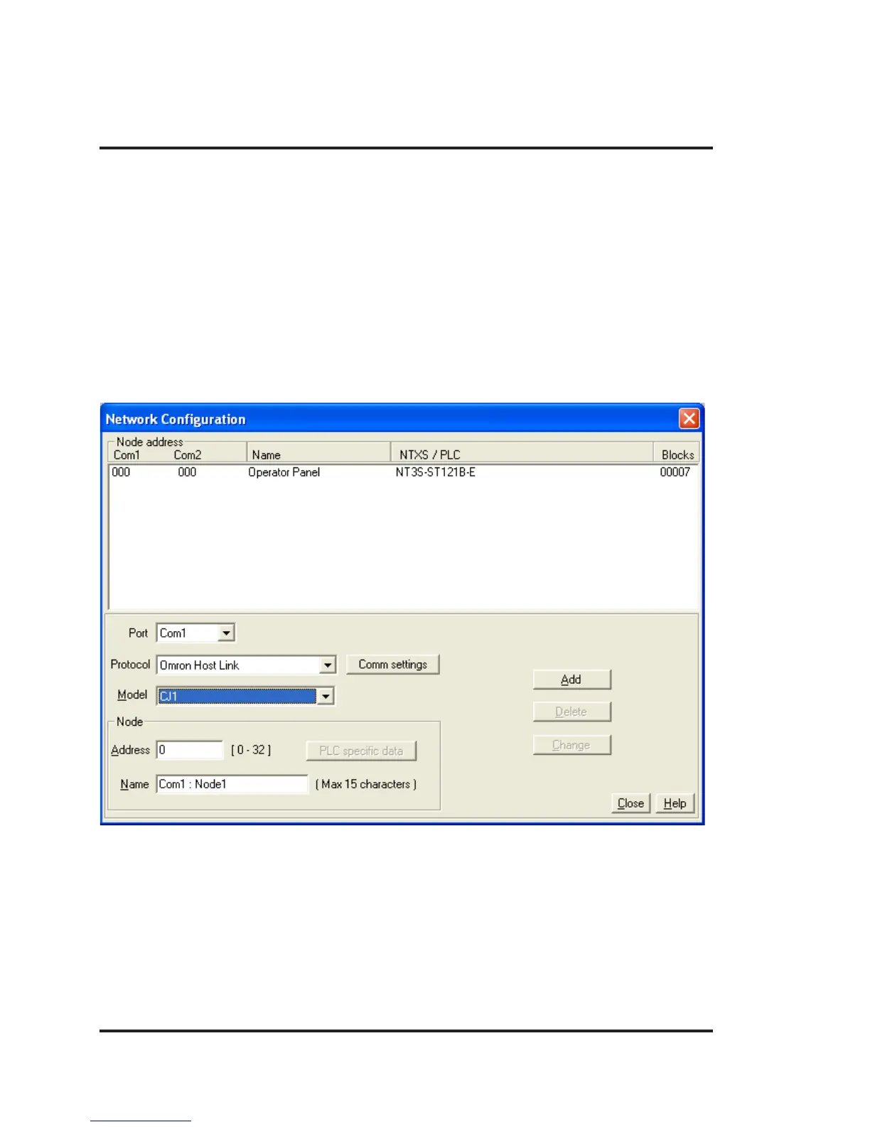 user has selected Omron Host Link at Com1.