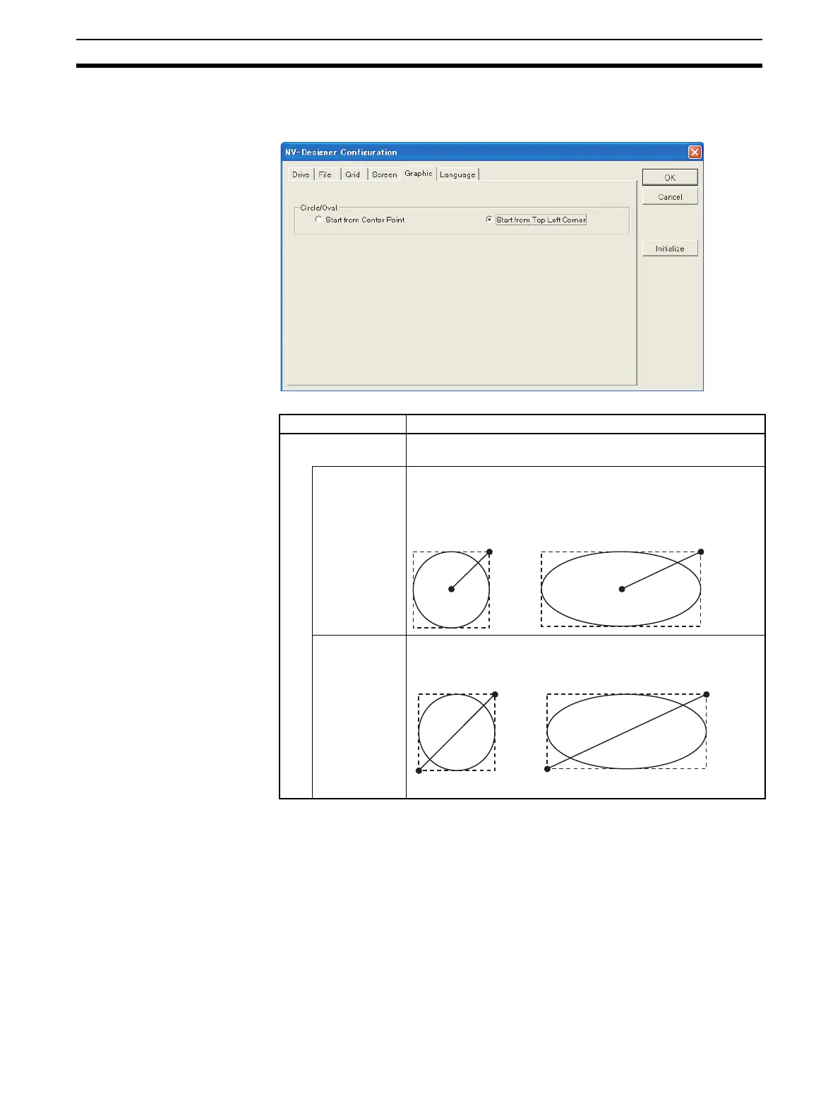 Circle/Oval Changes the method for drawing circles and oval, either start-