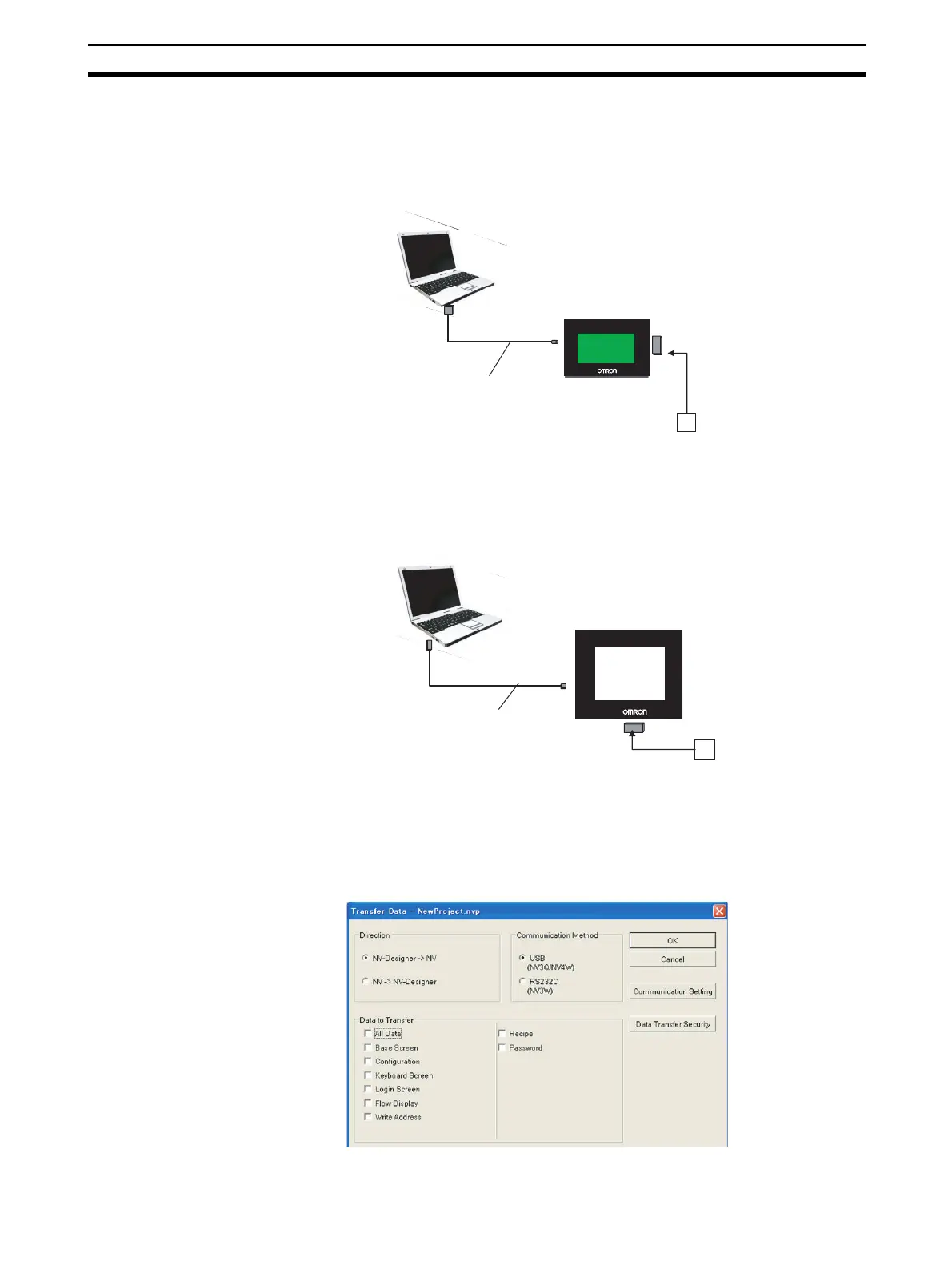 1,2,3... 1. Connect the PT and NV-Designer as shown in the following diagrams.