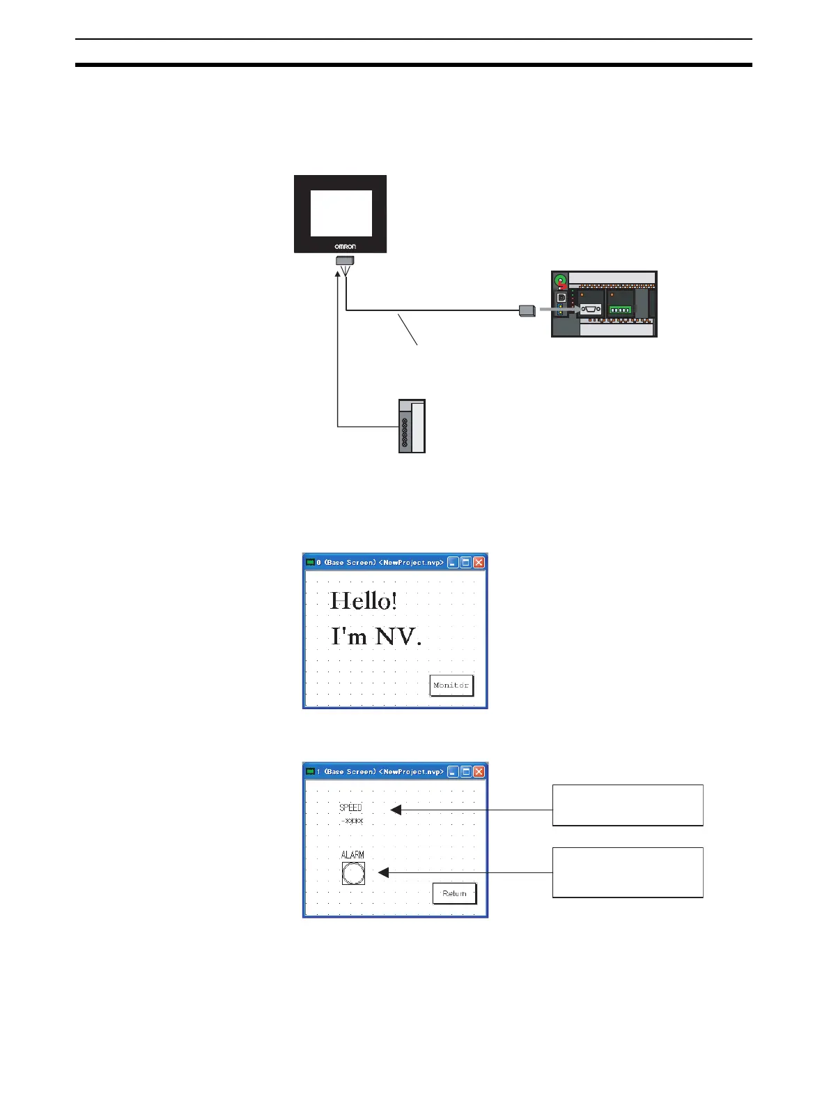 You can connect the PLC to the NV3Q using a RS-232C cable.