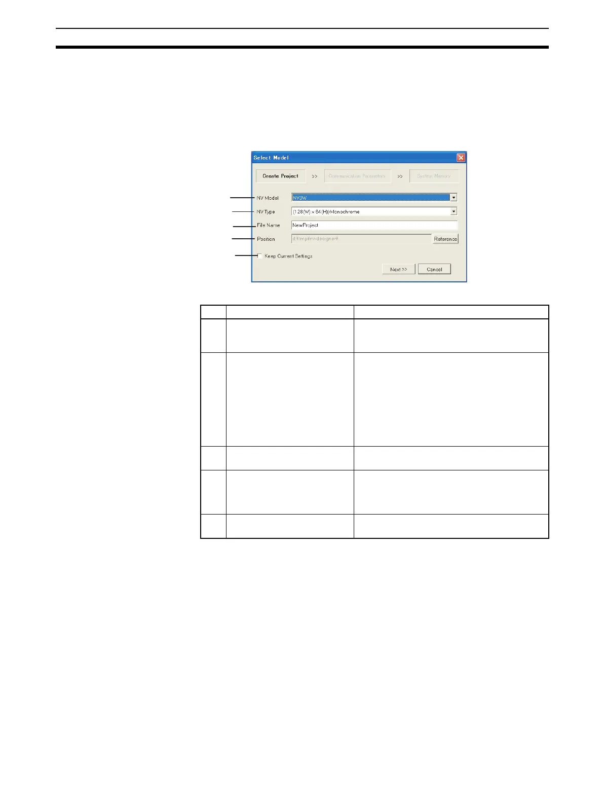 1 NV Model Select the model of the NV-series PT from the