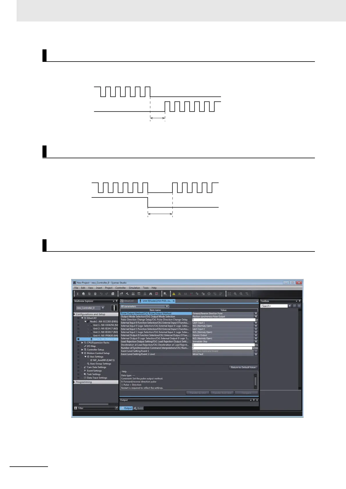 Set the pulse direction change delay as shown below when the Pulse Output Method parameter is set