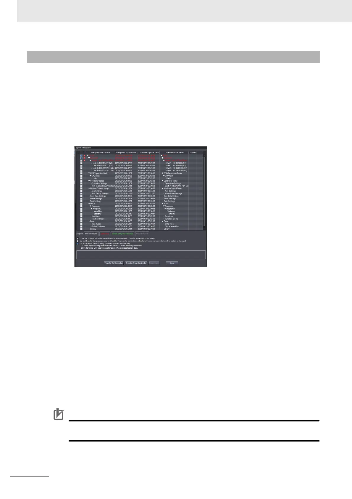 1 Place the Sysmac Studio online with the CPU Unit and execute synchronization.