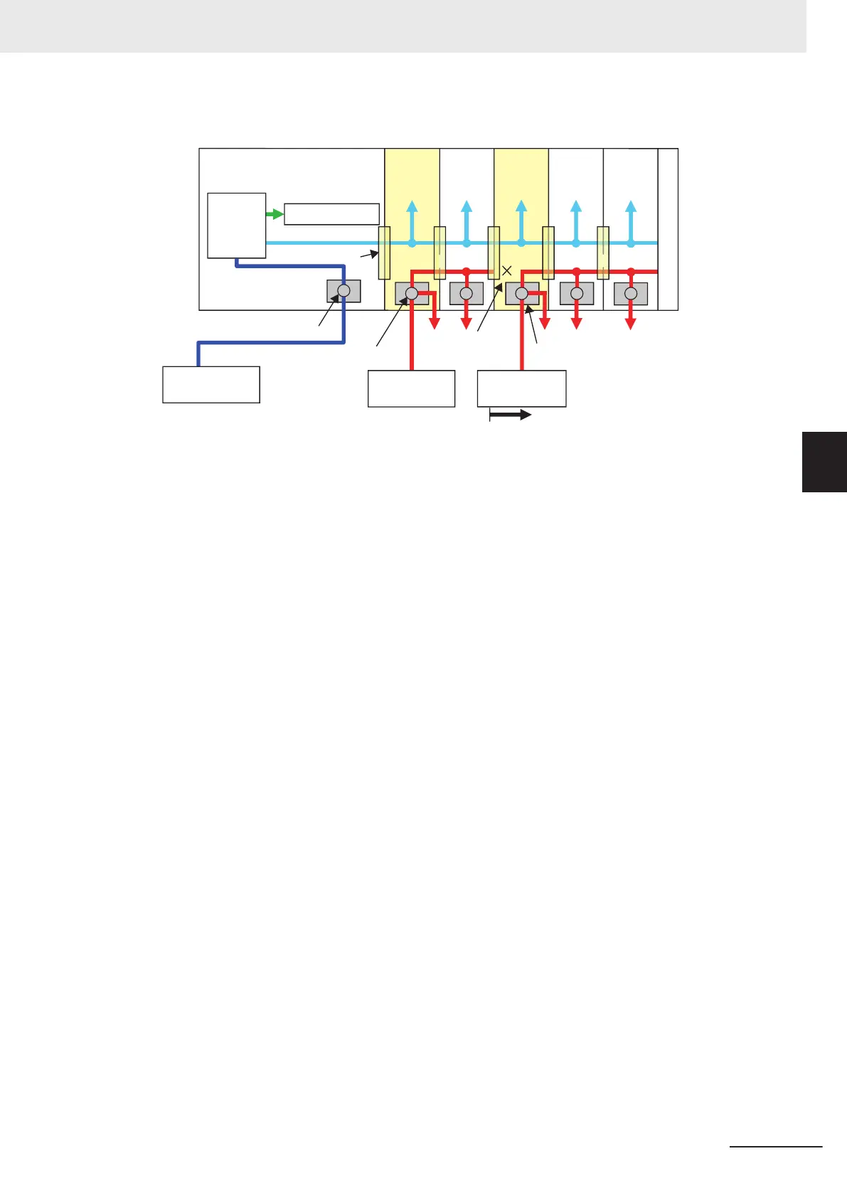 Basically, the I/O power supply line connects adjacent NX Units through the NX bus. However, the