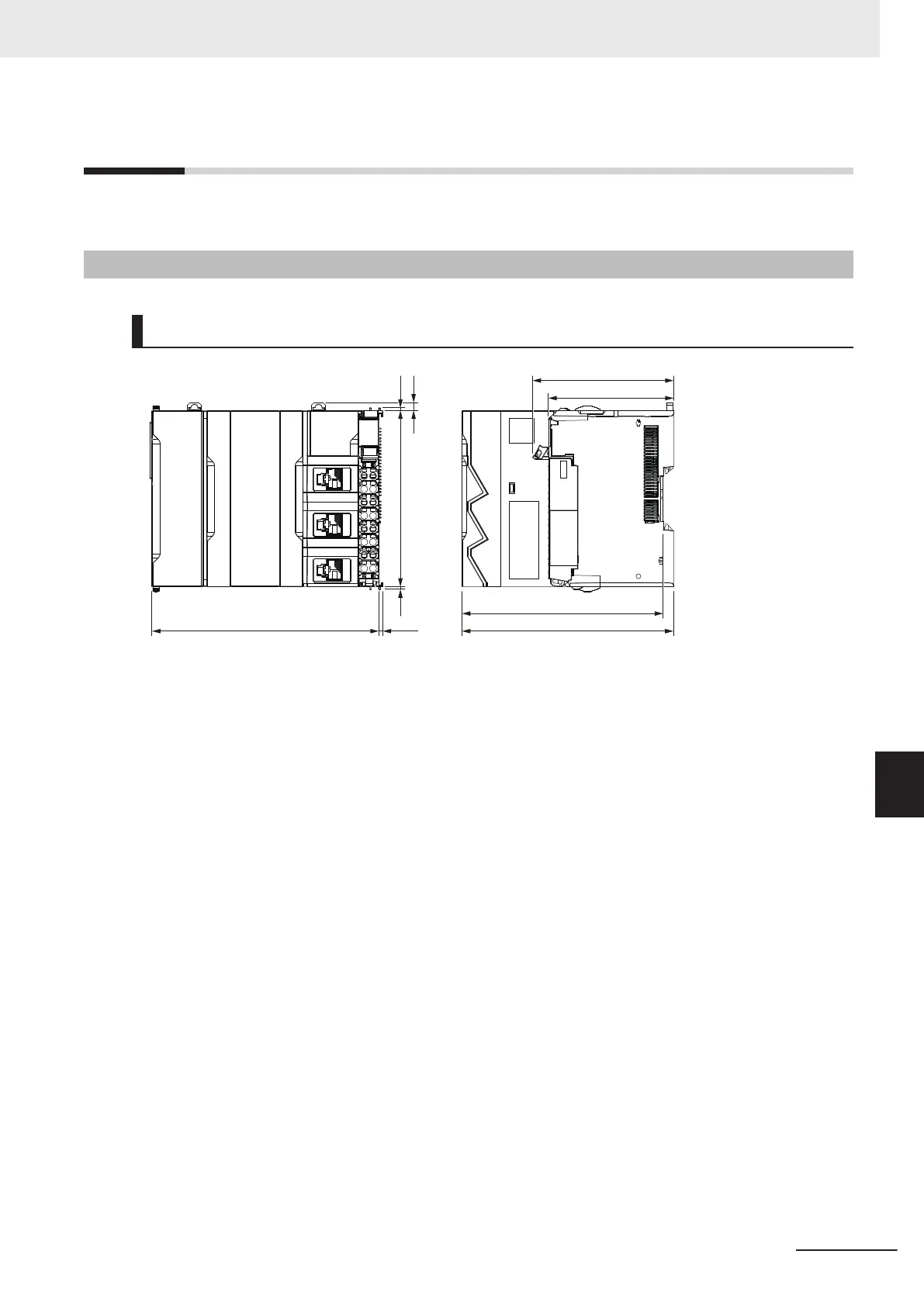 For dimensions after attaching the communications cables, refer to 5-3-14 Assembled Appearance