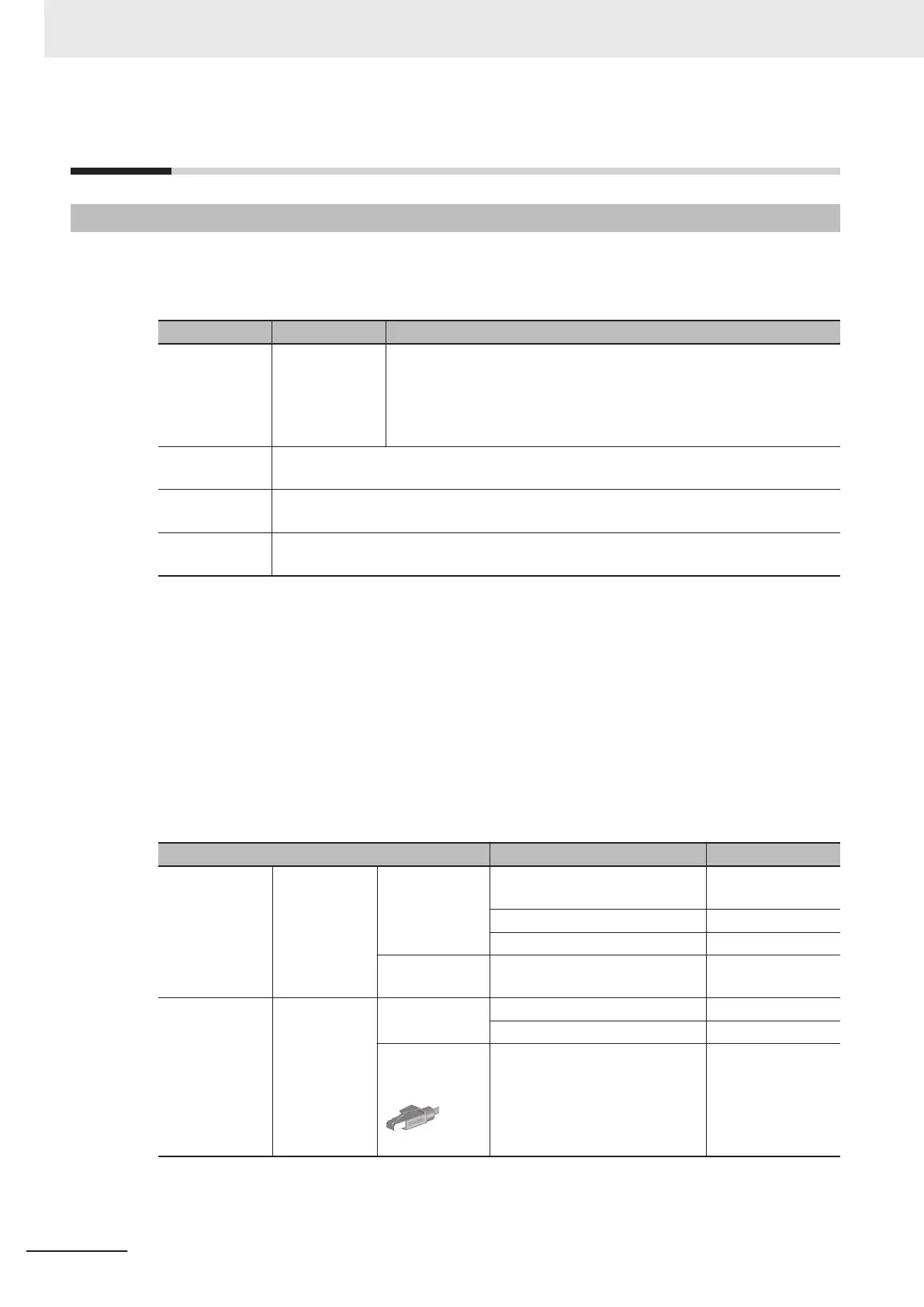 Applicable EtherNet/IP communications cables and connectors vary depending on the used baud