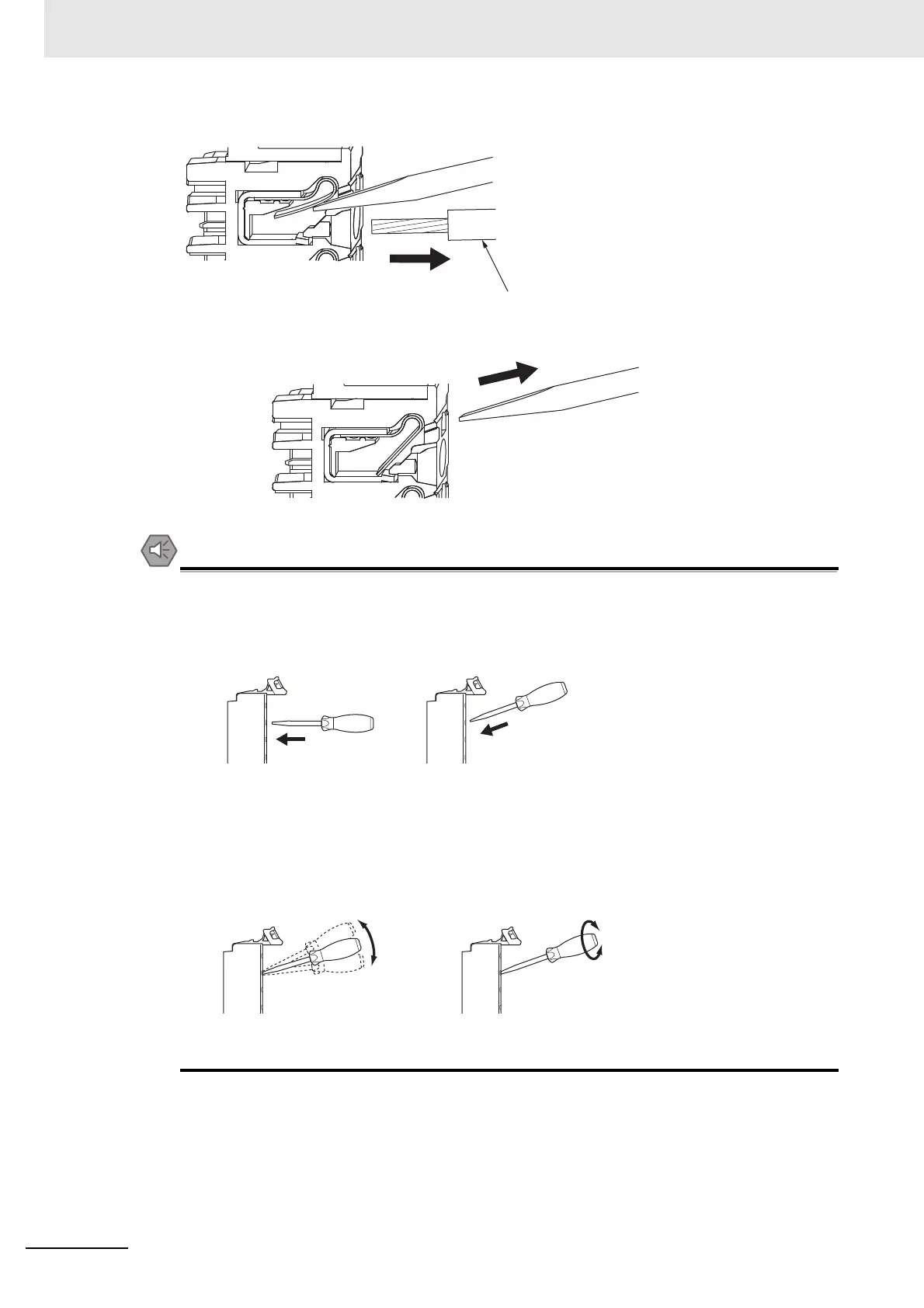 • Do not press the flat-blade screwdriver straight into the release hole. Doing so may break the