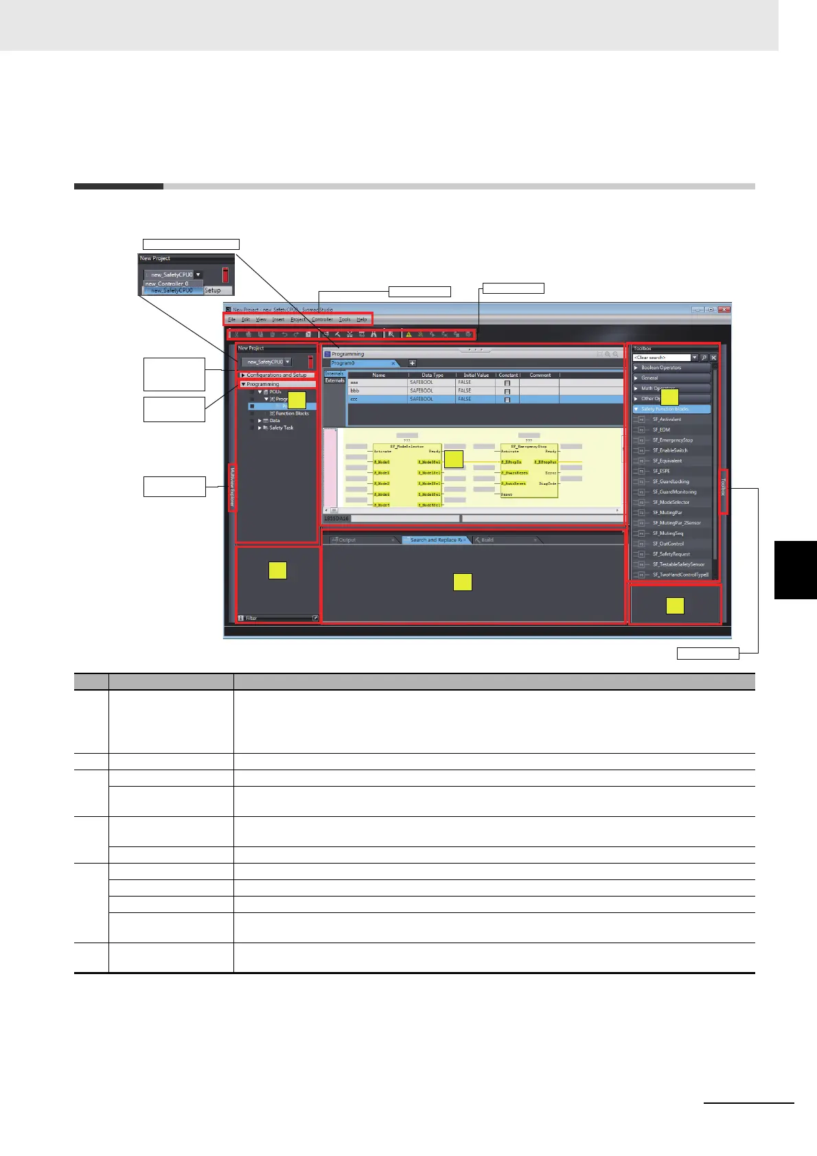 6-2 Part Names and Functions of the Sysmac Studio Window