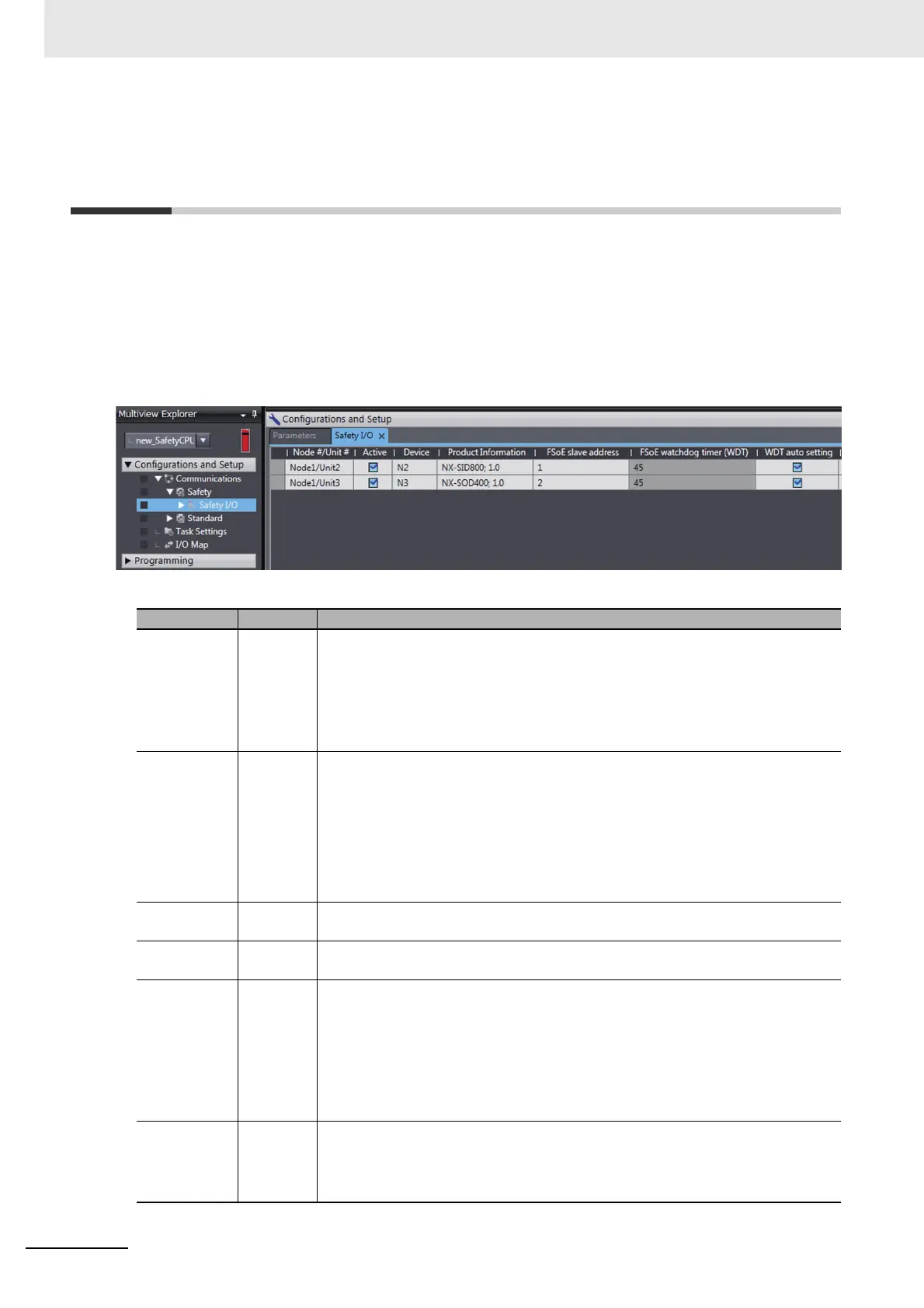 • This setting assigns the Safety I/O Unit to the Safety CPU Unit as a communica-