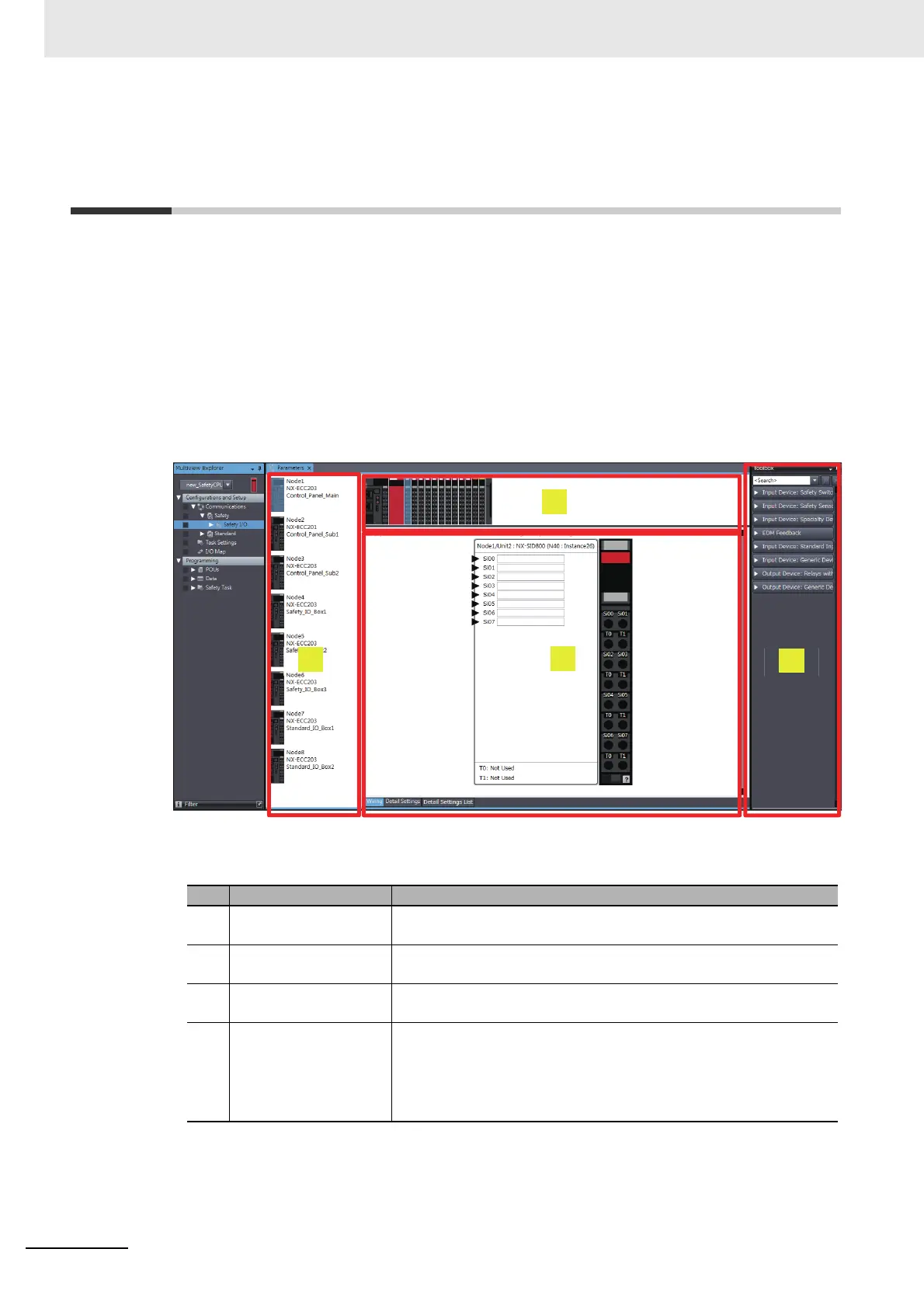 that are set for the Safety I/O Units. You can arrange the devices, set