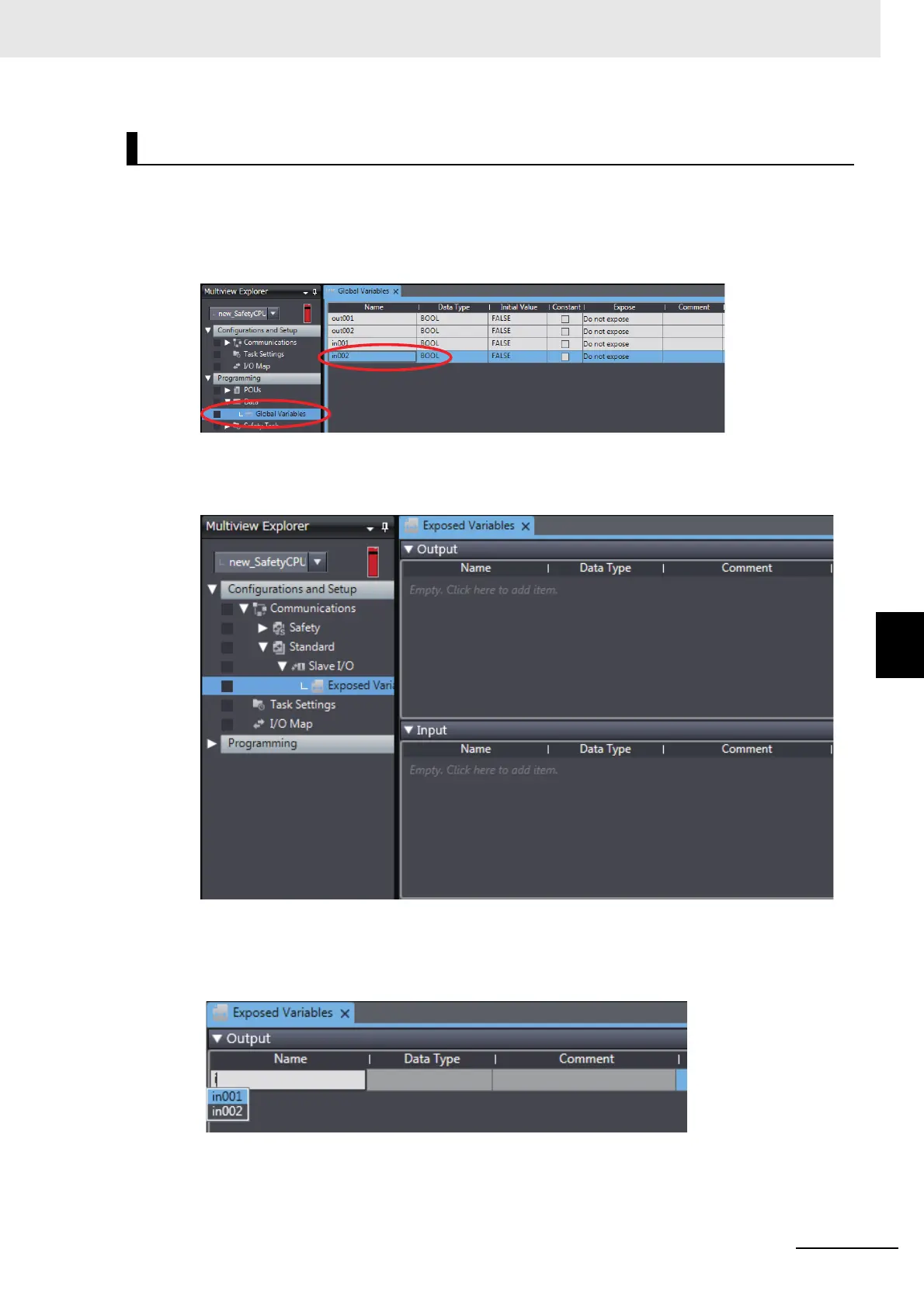 Use the following procedure to select registered global variables on the Exposed Variables Tab Page
