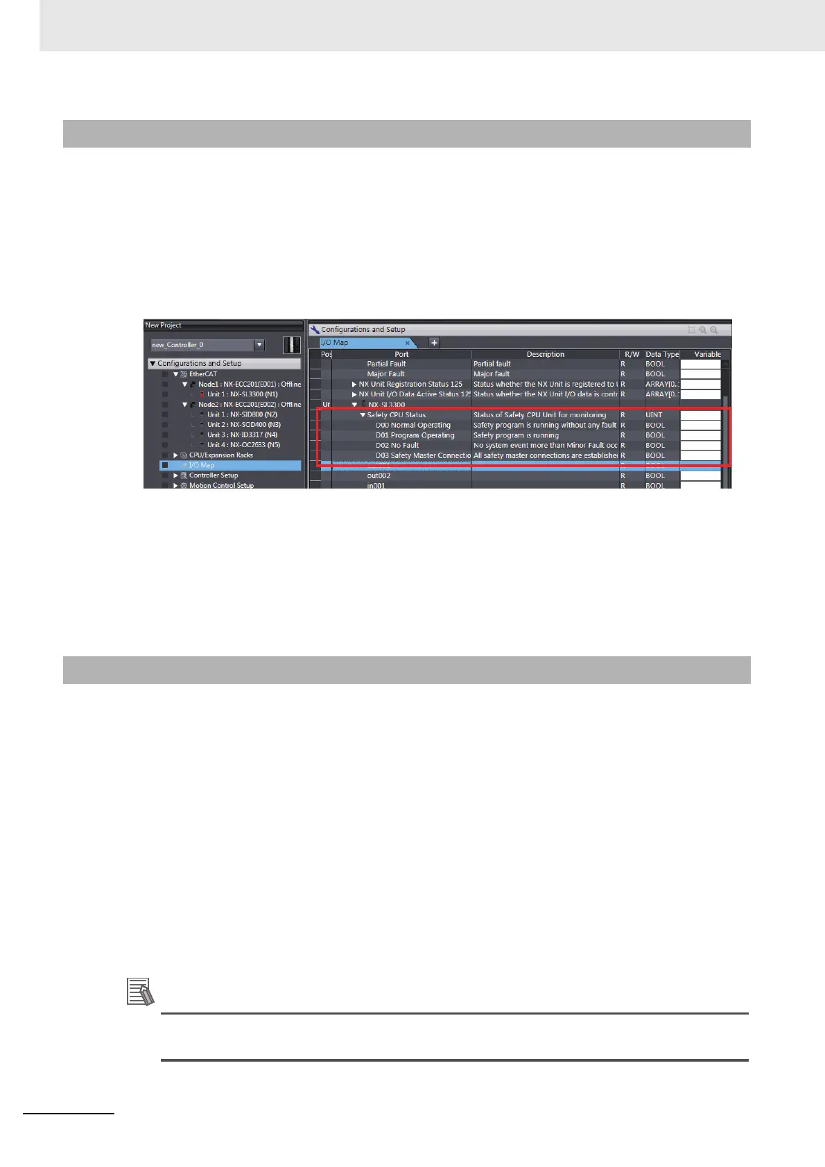 The status of a Safety CPU Unit is displayed as I/O ports in the I/O Map of the NJ/NX-series CPU