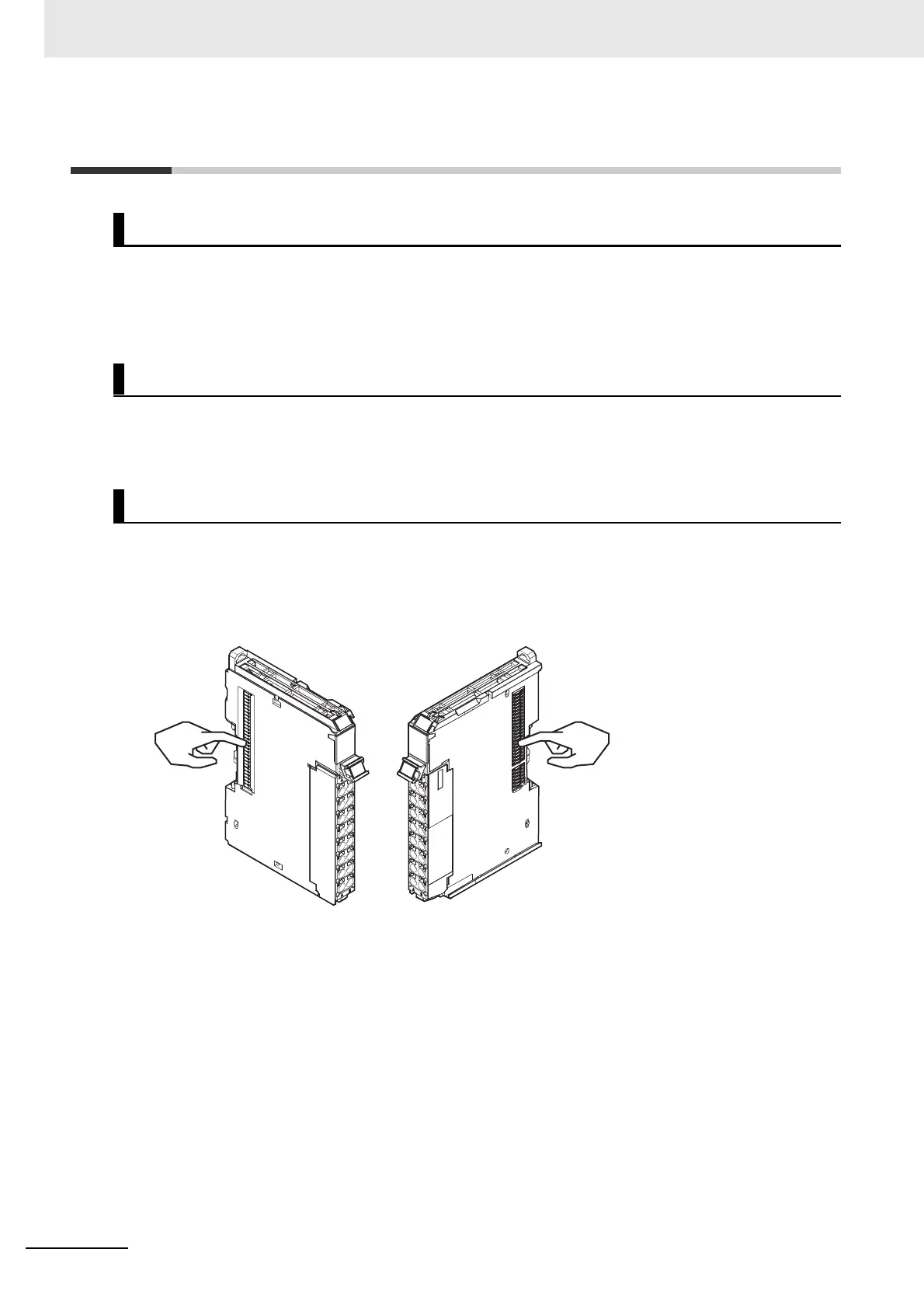 • Mount terminal blocks and connectors only after checking the mounting location carefully. Be sure