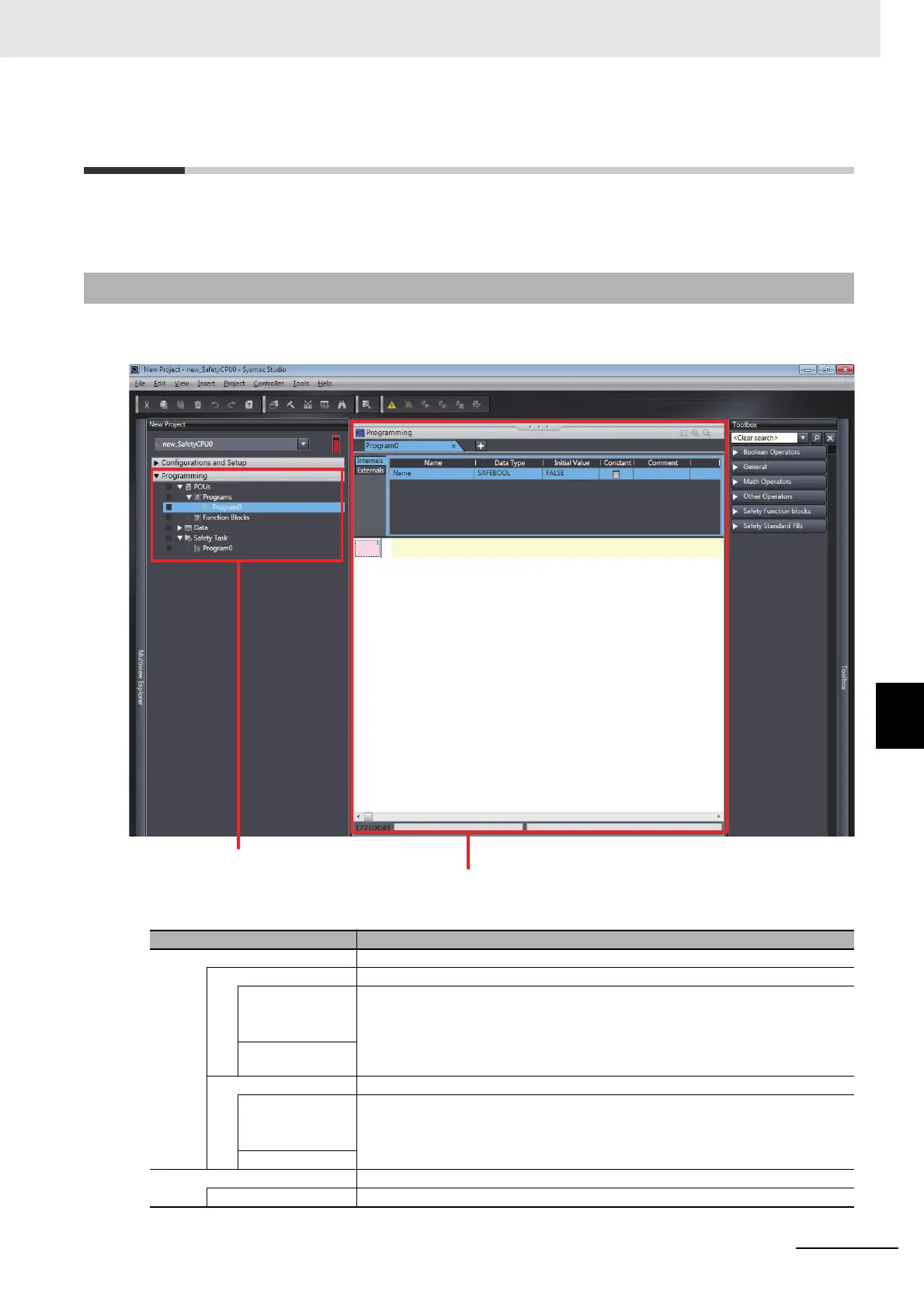 You use the Programming Layer with the Controller set to the Safety CPU Unit on the Sysmac Studio