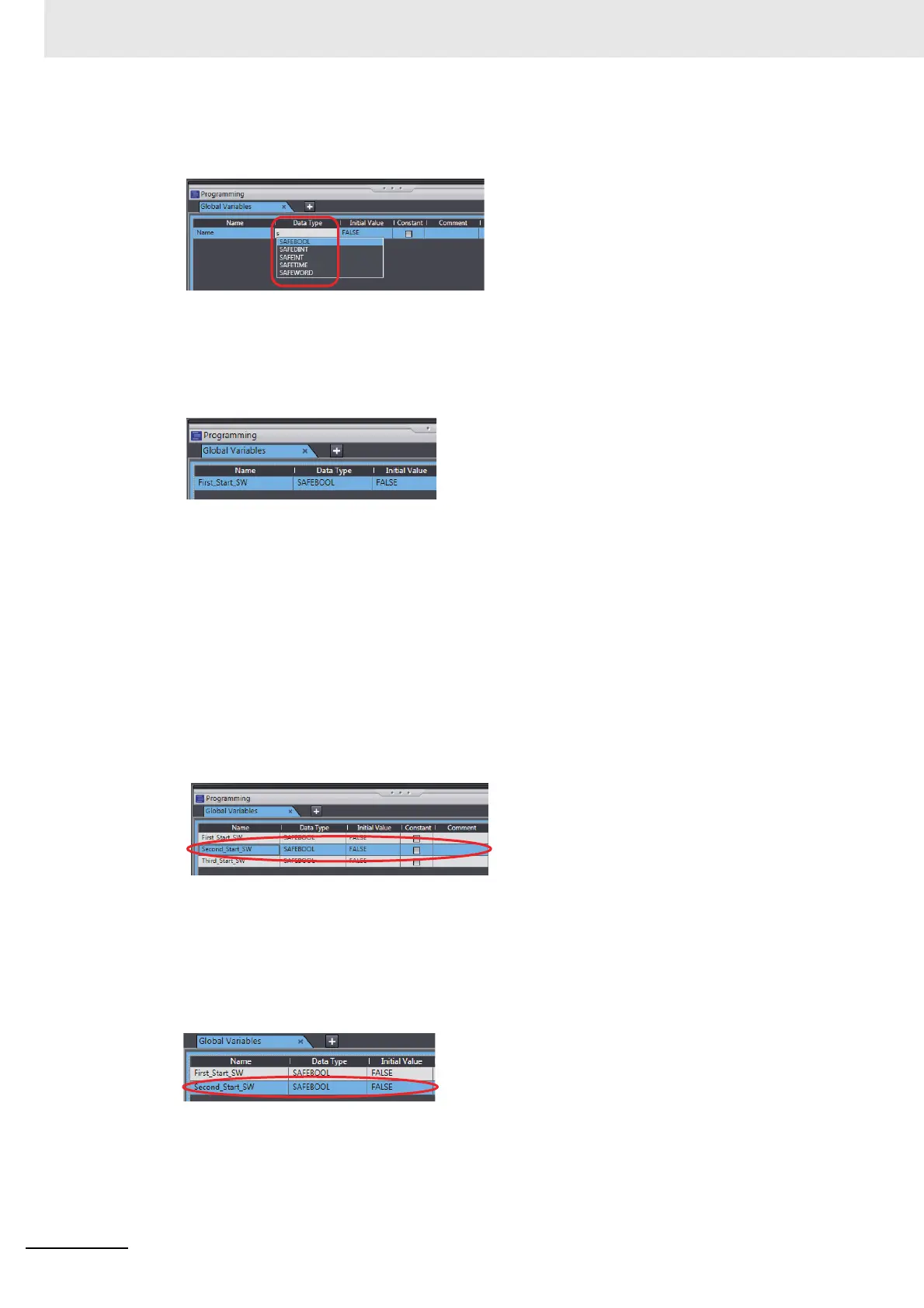 Entry candidates are displayed in the Name, Data Type, and Initial Value cells.