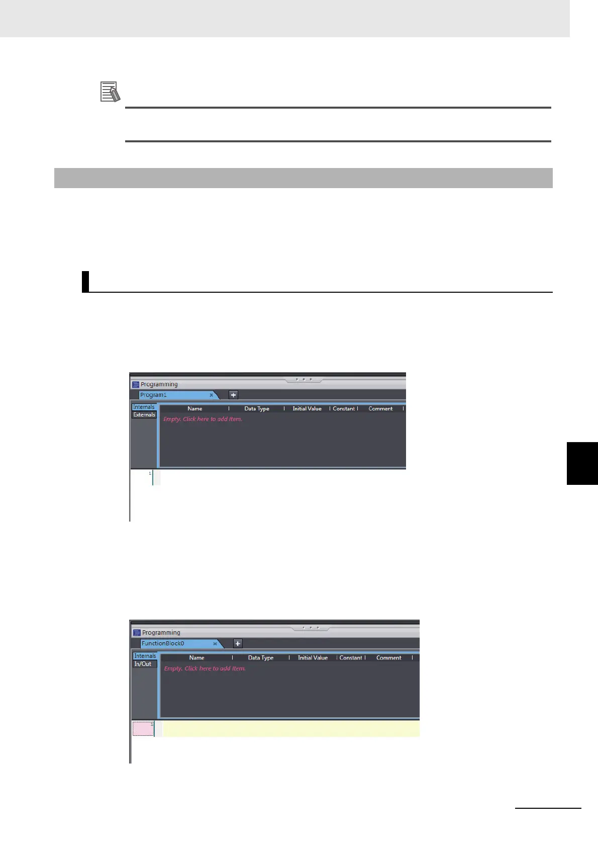 Refer to 7-5-2 Registering POUs on page 7-29 for the program registration procedure.
