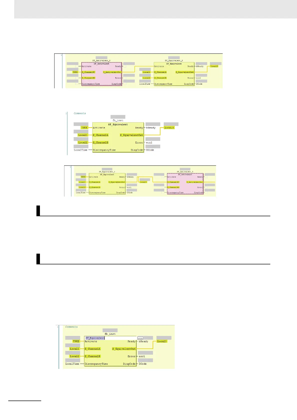 If you drop the SF_Antivalent FB on an input terminal, the FB is inserted before the input termi-
