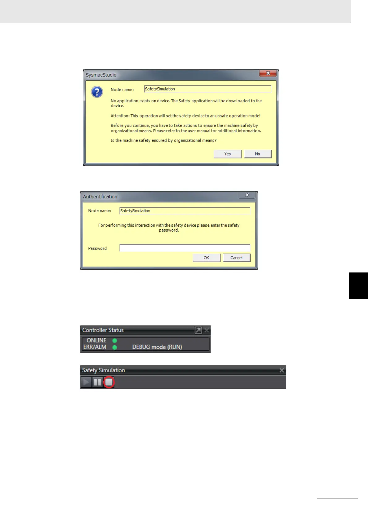 11 To stop the simulation, click the Stop Button in the Safety Simulation Pane.
