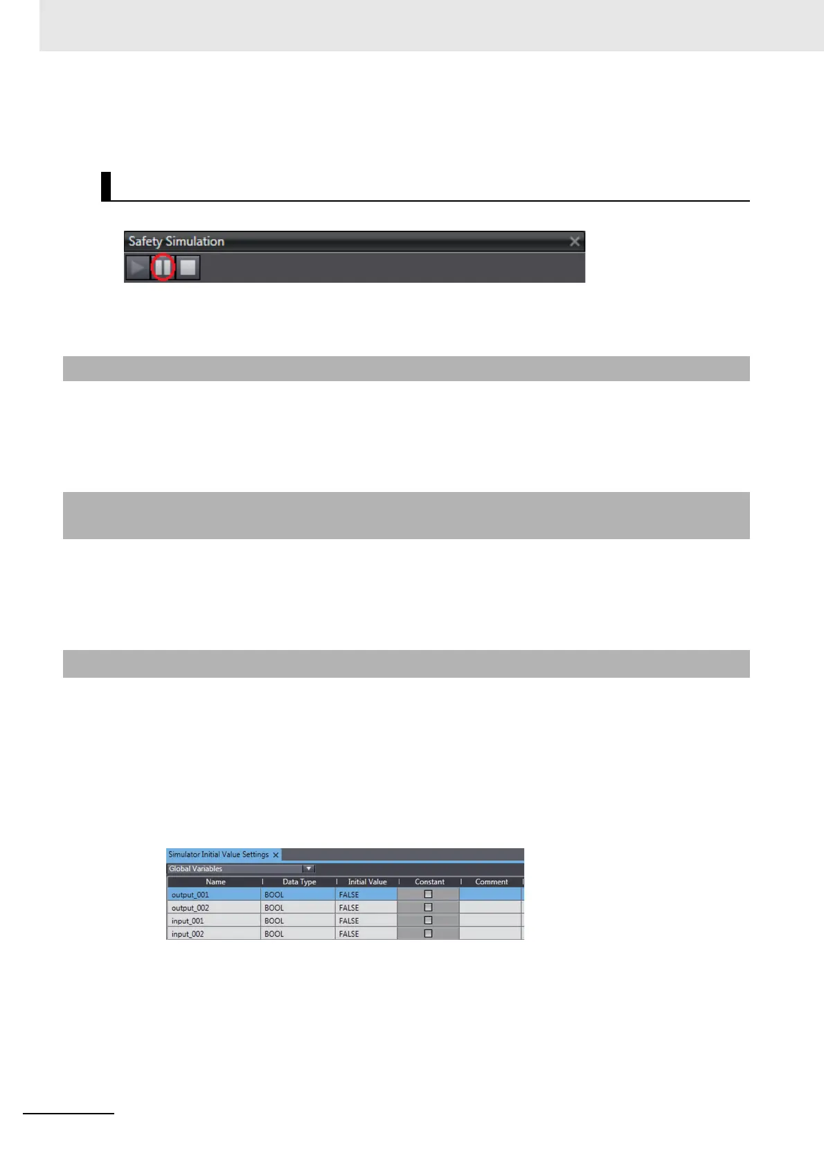 You can debug the safety program by controlling BOOL variables (Set/Reset), changing present val-