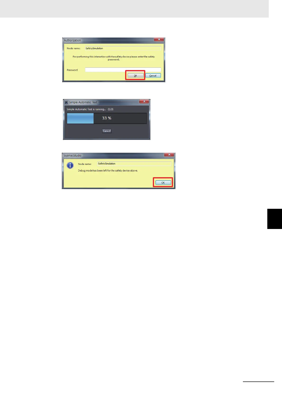 You can check the progress of the Simple Automatic Test in the following dialog box.