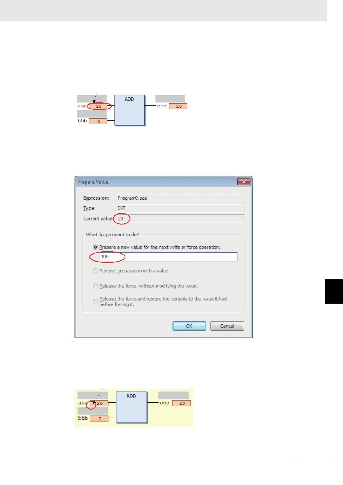 Use the following procedure to execute forced refreshing on non-BOOL variables.