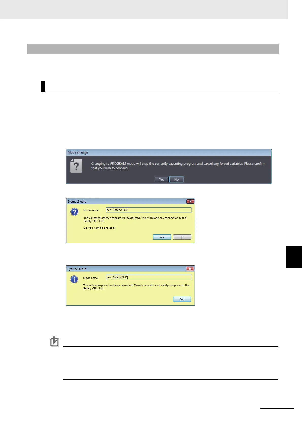 Use the following procedure to change the Safety CPU Unit from RUN mode to PROGRAM mode.