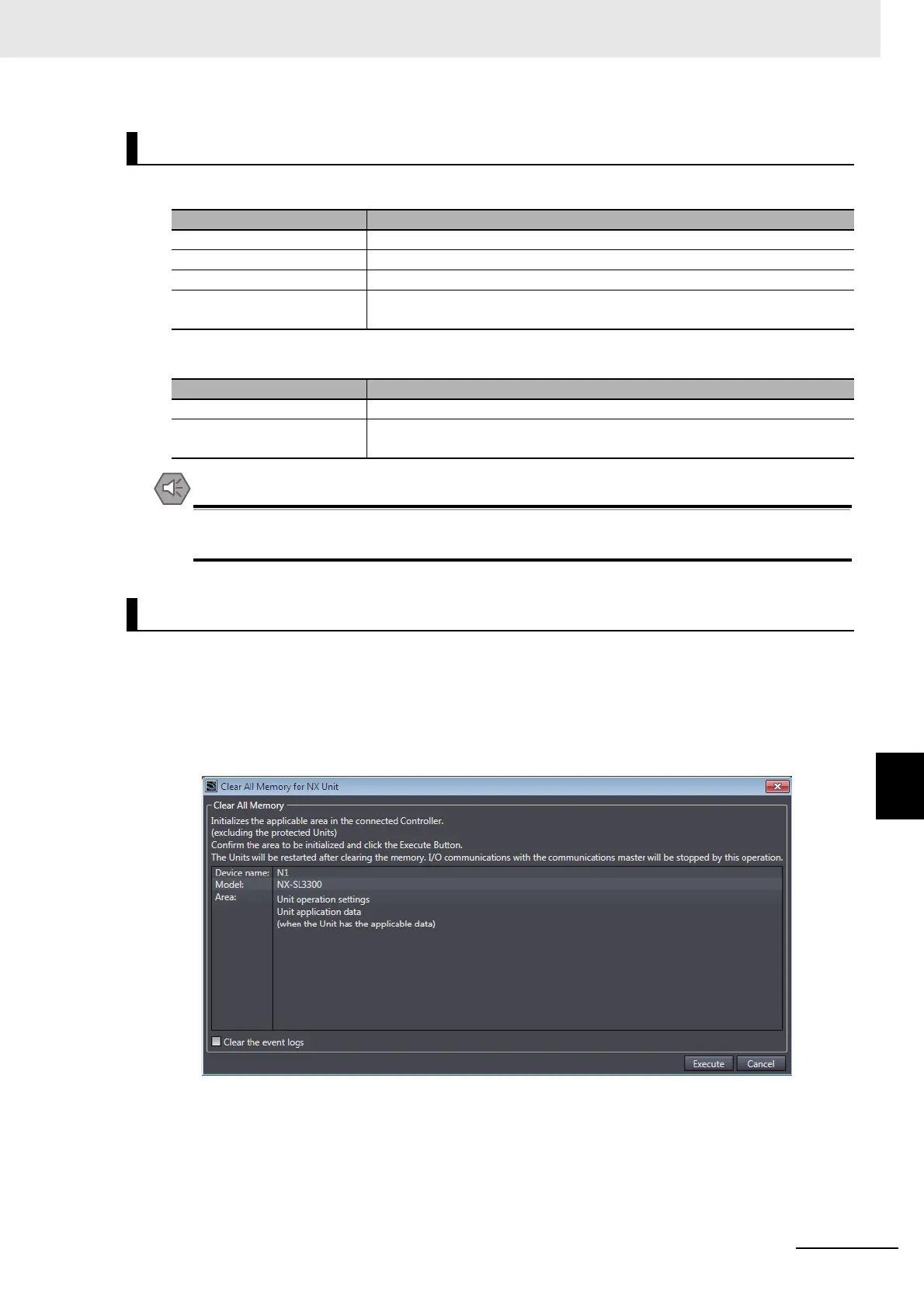 2 Click the Execute Button. The Clear All Memory Confirmation Dialog Box is displayed.