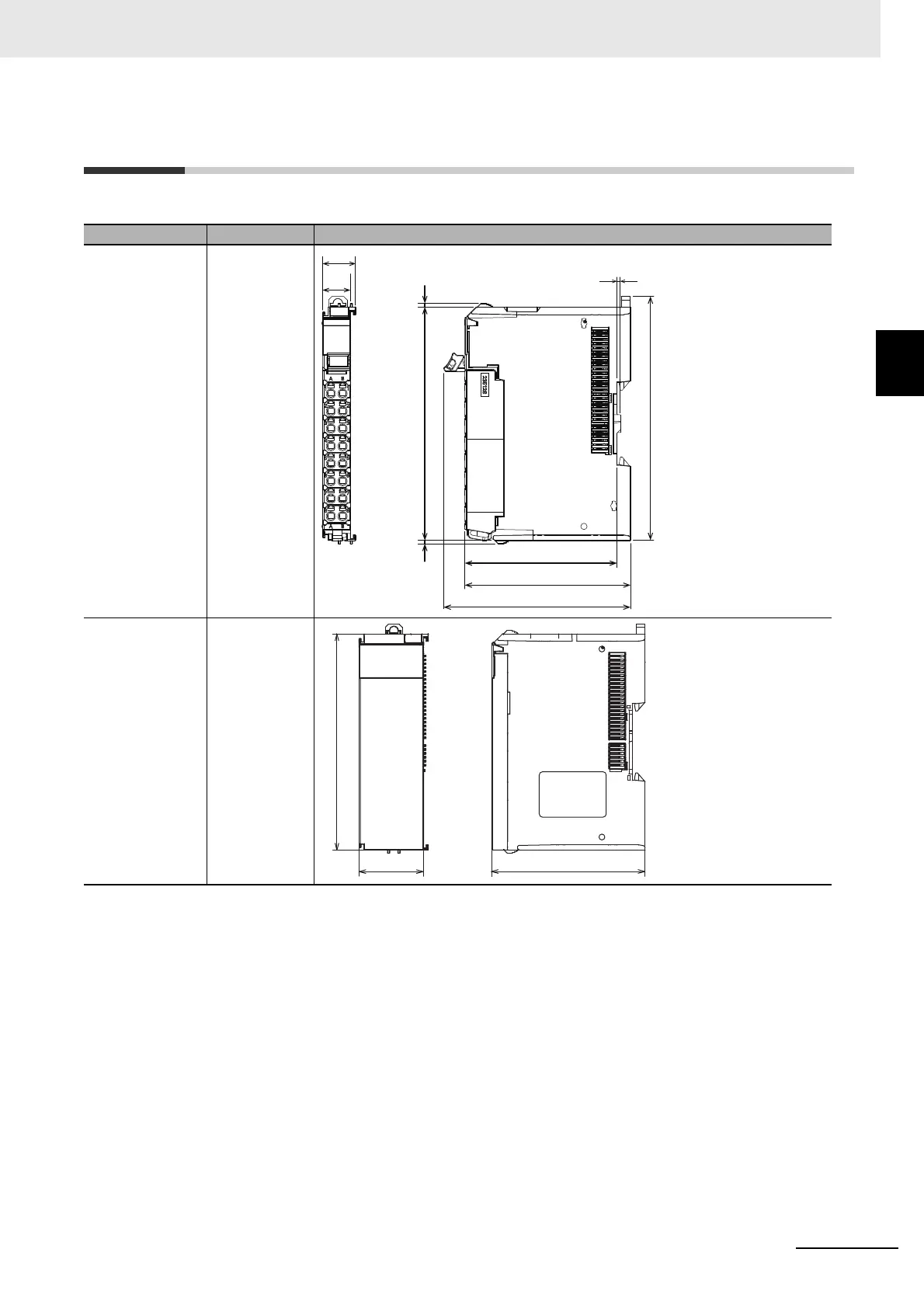 The dimensions of the Safety Control Units are given in the following table.