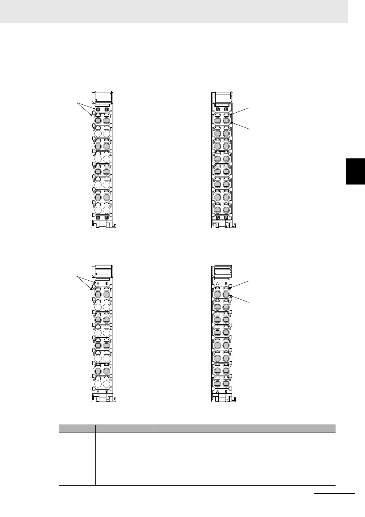 nal numbers from A1 to A8 and B1 to B8. The terminal number indicators