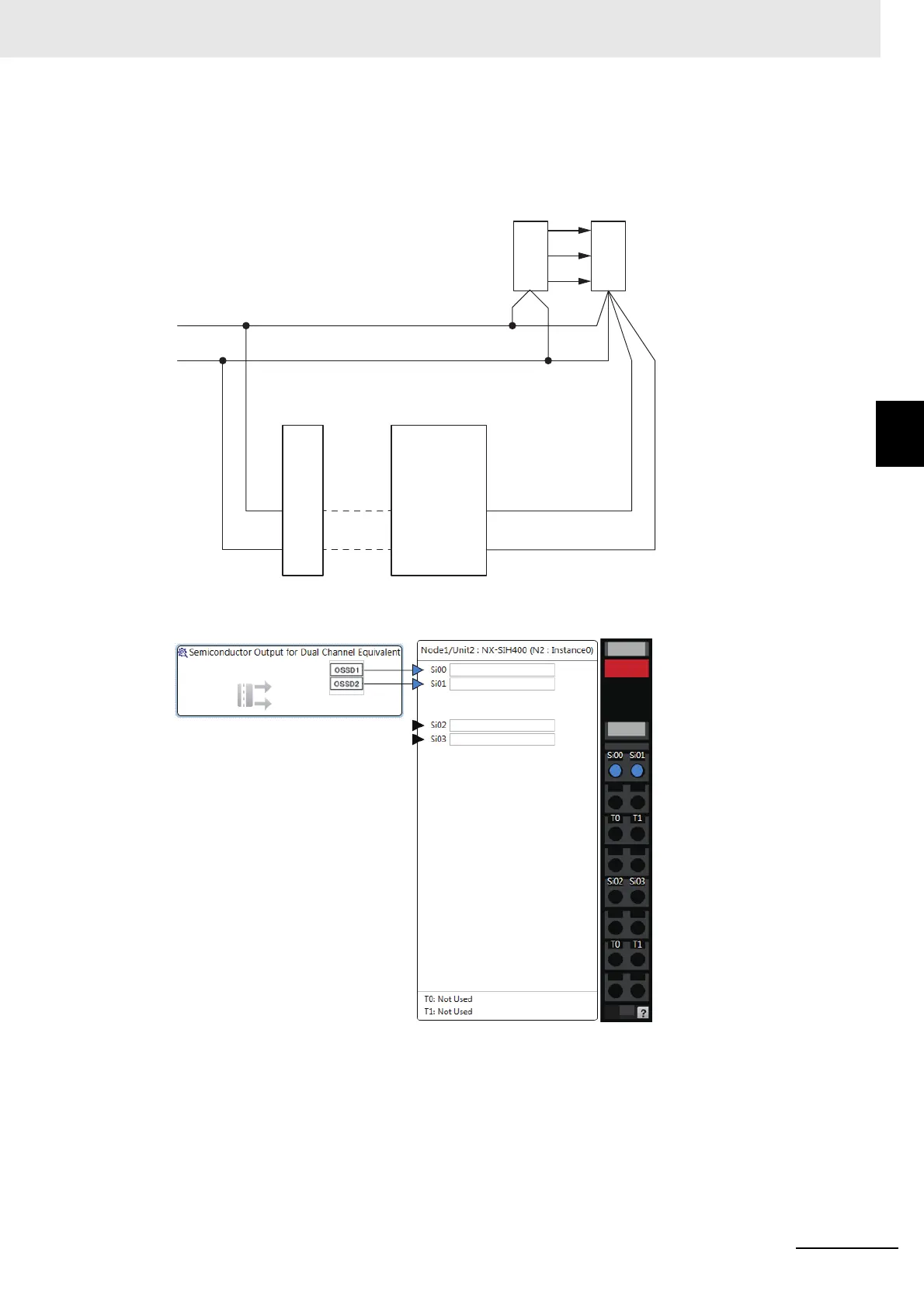 The signal from a device with a semiconductor output, such as a light curtain, is input to a safety