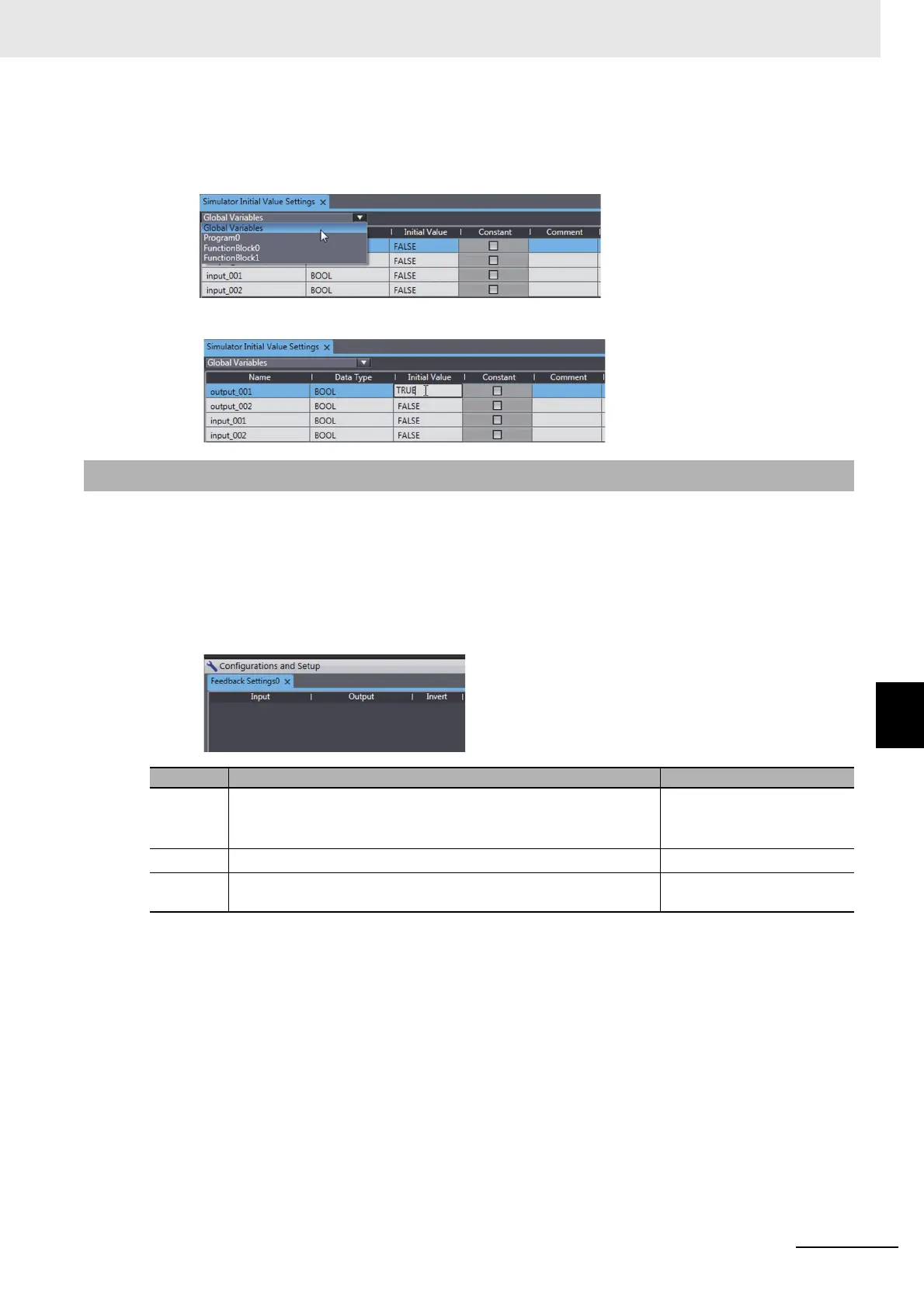1 Select Feedback Setting from the Simulation Menu.