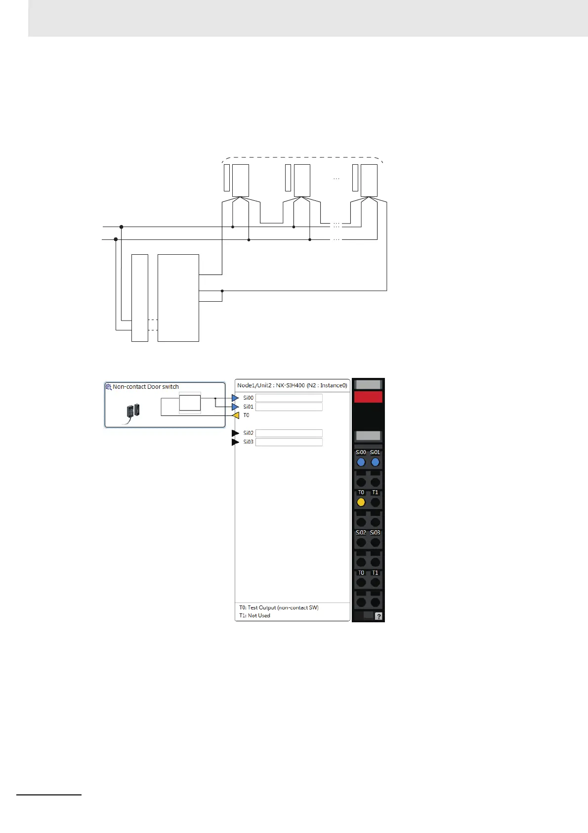 Switch is input to a safety input terminal. This is a one-line signal. When connecting it, branch it as
