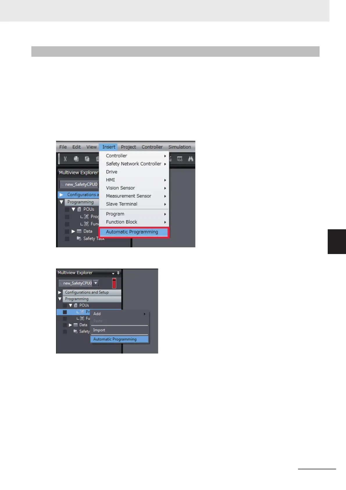 • In the Multiview Explorer, select Programming – POUs – Programs. On the right-click menu, se-