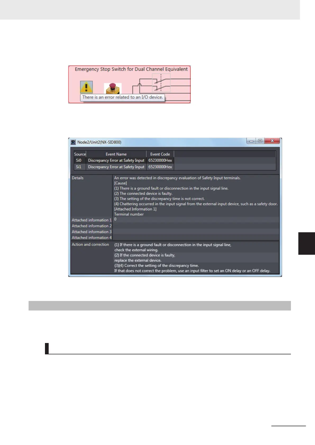 For details on the safety I/O terminal errors, refer to 12-3-4 Error Descriptions on page 12 - 31.