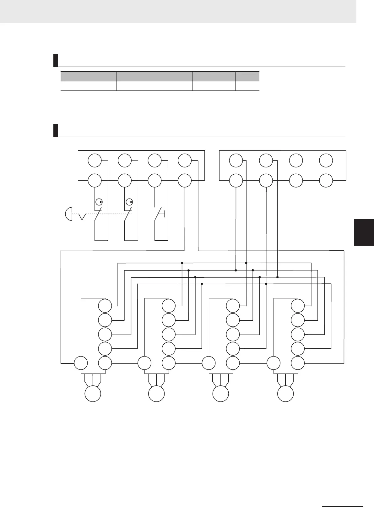 All servomotors M stop when emergency stop pushbutton S1 is pressed.