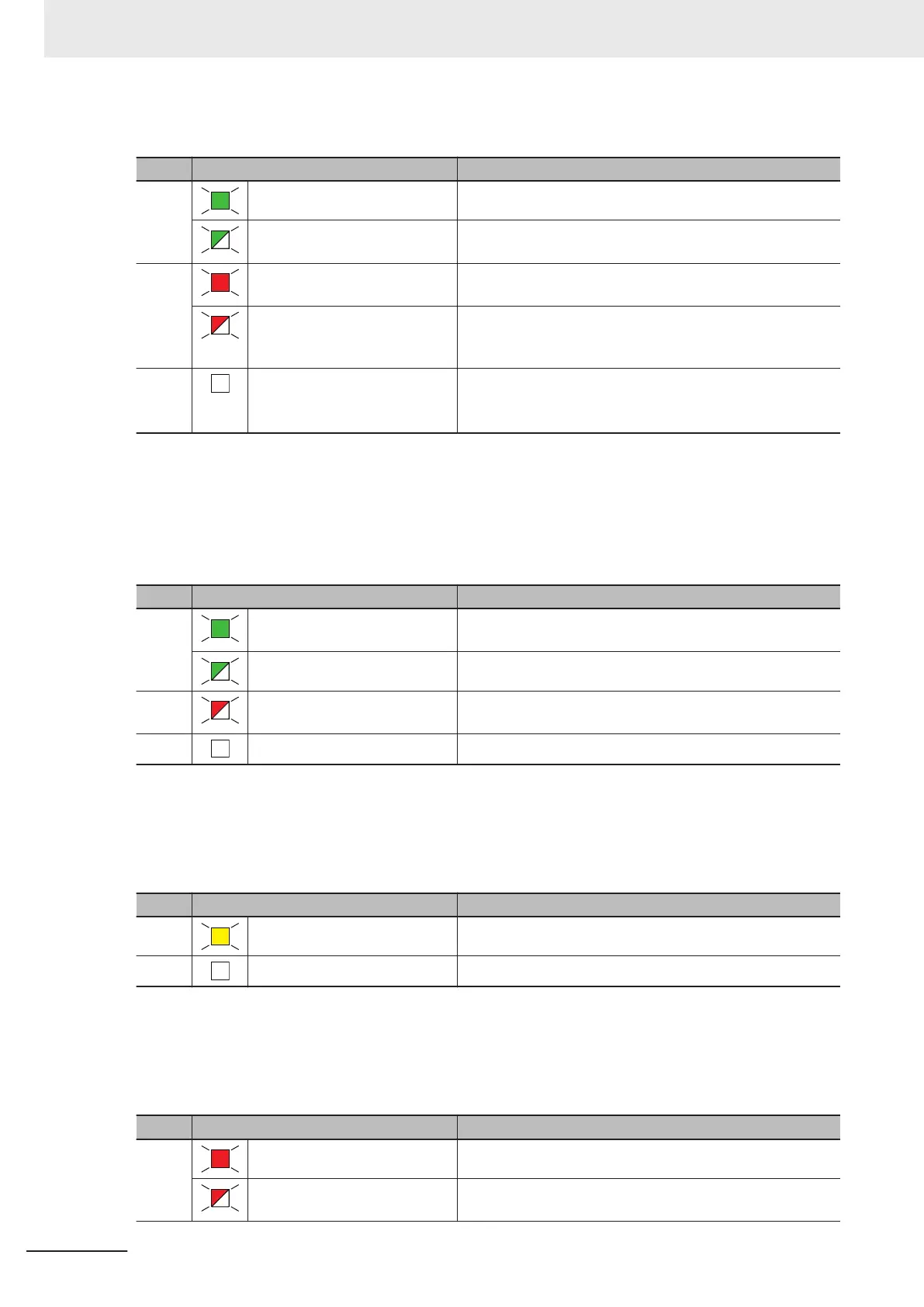 Red Flashing (at 1-s intervals) An FSoE communications error, safety input terminal error,
