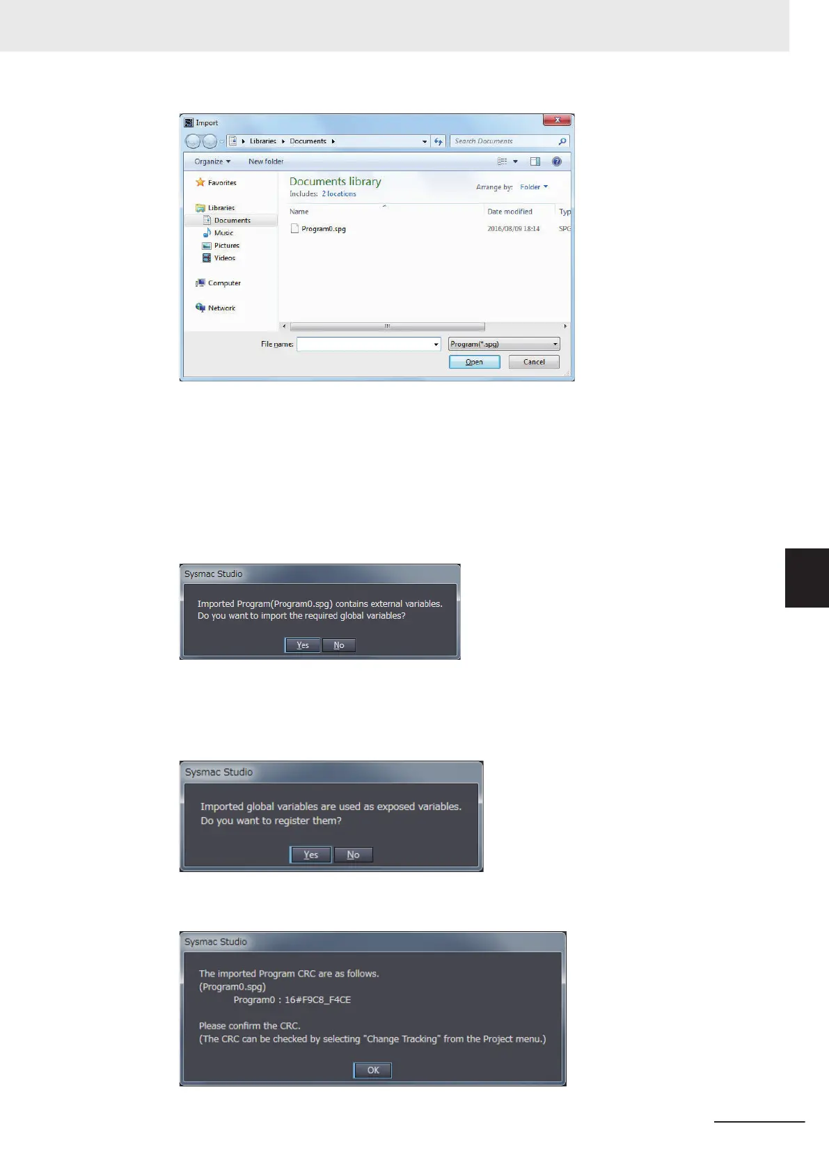 When external variables are used in the program to import, the following dialog box is dis-