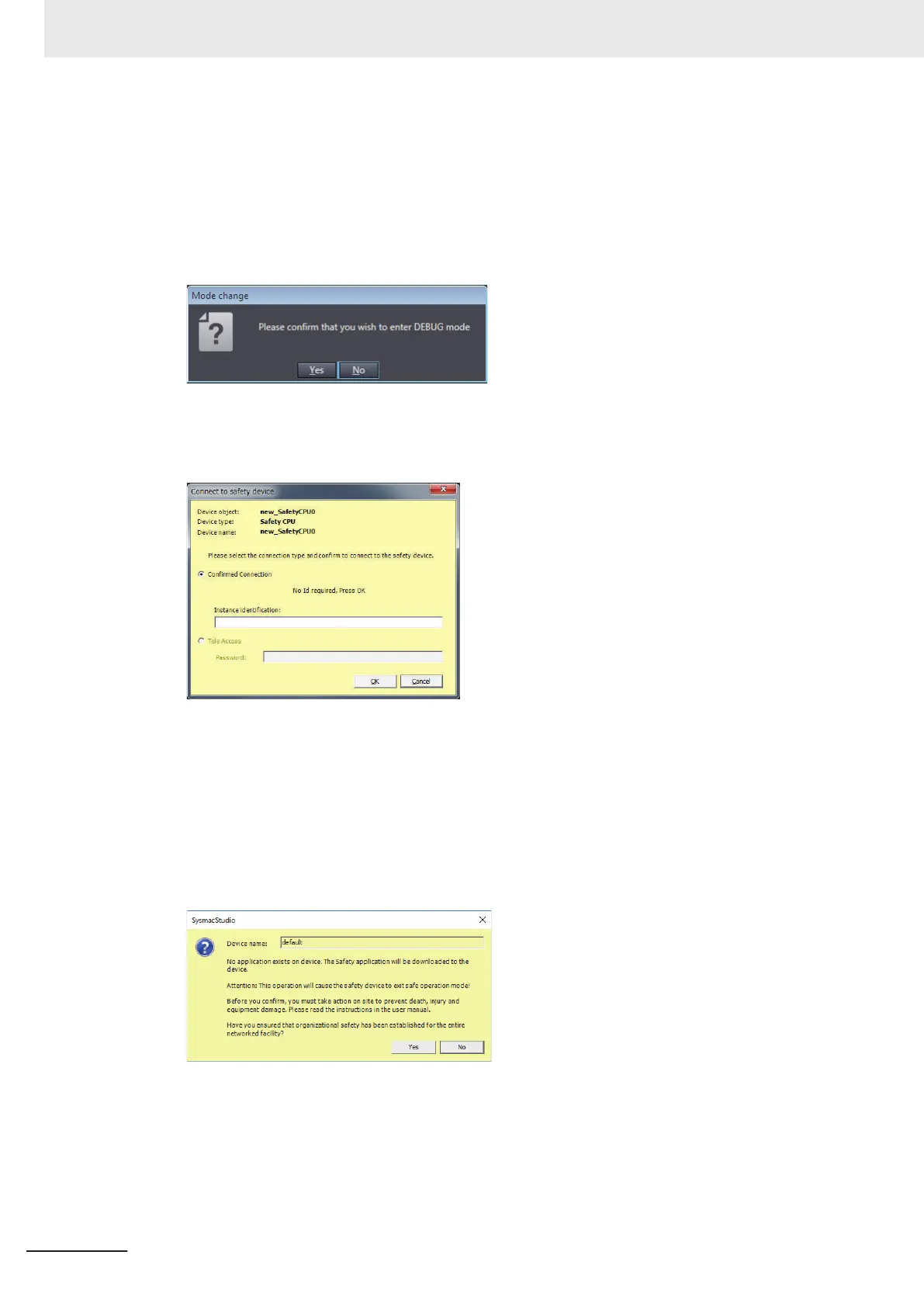 Note 1. When you change the operating mode for the first time, the above dialog box is displayed and