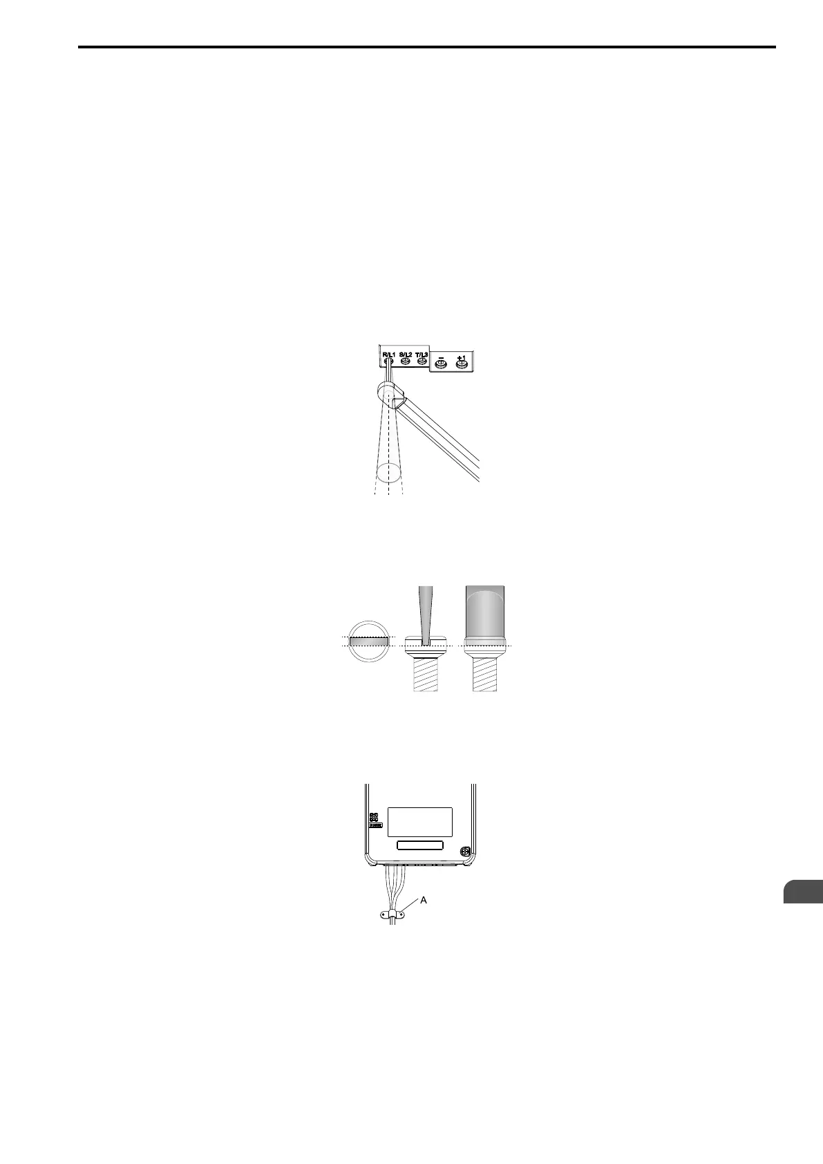 When tightening slotted screws, hold the straight-edge screwdriver perpendicularly to the screw. Do not allow the tip of the