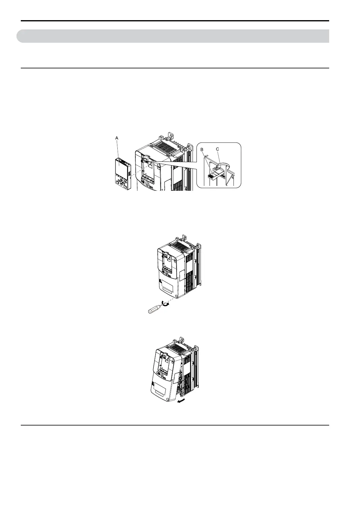 Omron Q2A-A4004-AAA - Removing;Reattaching Covers; Remove the Front Cover of Drive Models 4002 - 4168; Reattach the Front Cover of Drive Models 4002 - 4168