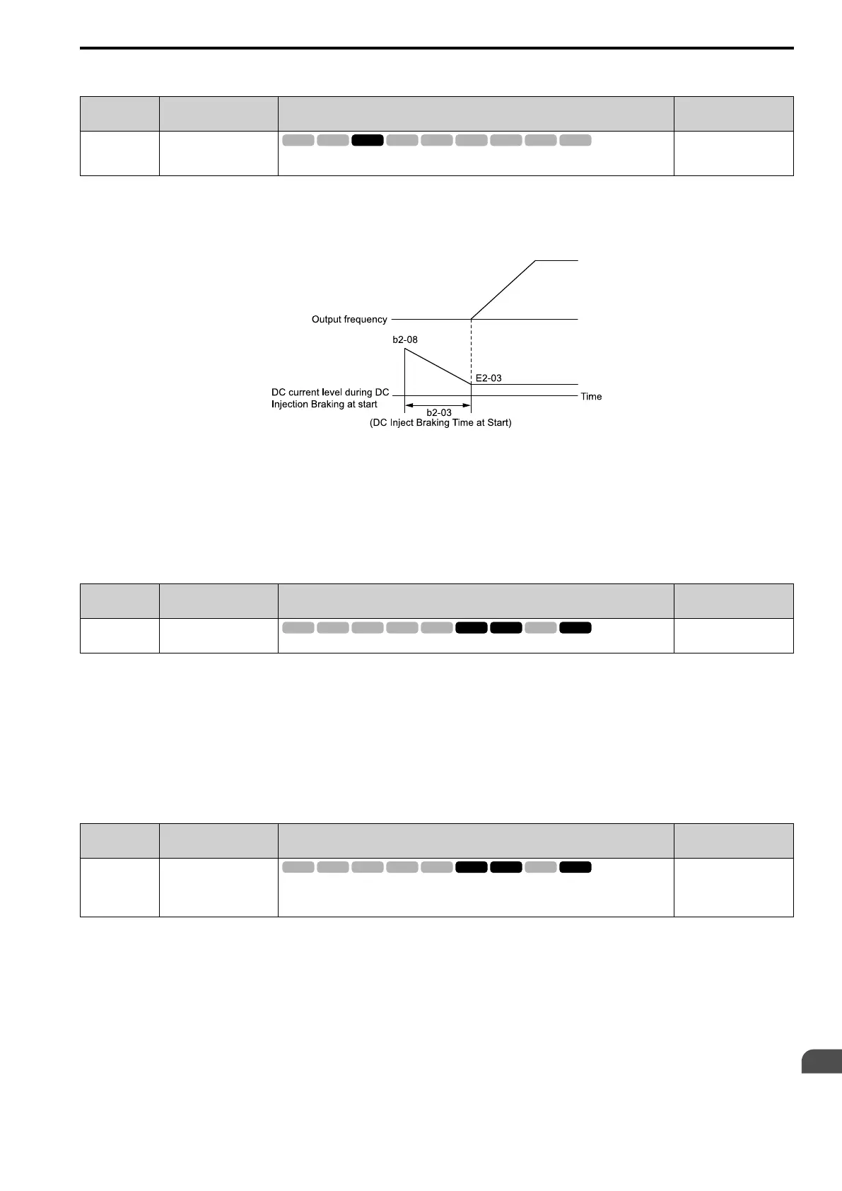 The DC Injection Braking at start current level changes linearly from the value set in b2-08 to the value set in E2-