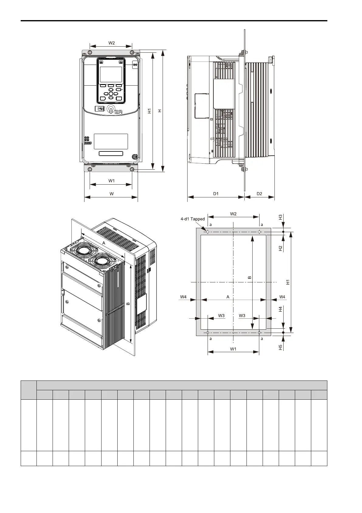 Table 2.5 Panel Cut-Out Dimensions (400 V Class)