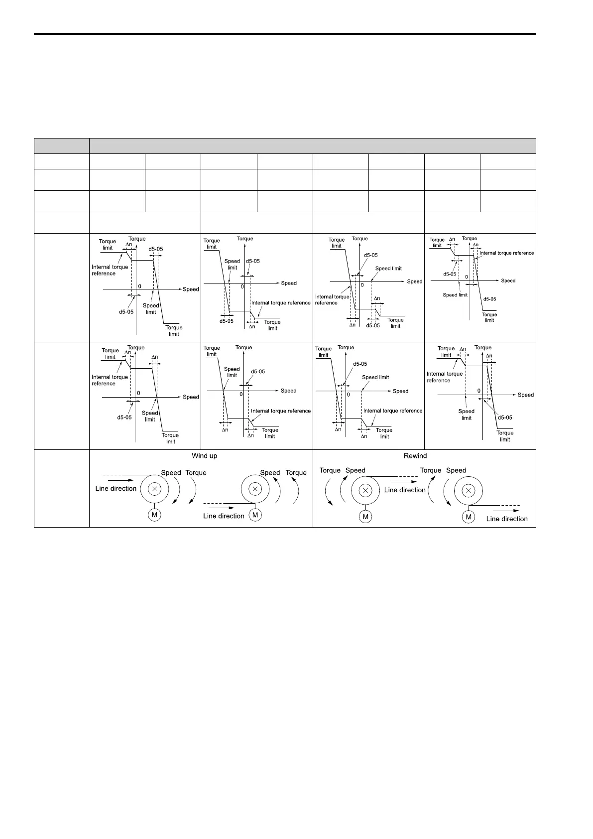 The drive reads the speed limit setting from the input selected in d5-03 [Speed Limit Selection]. You can use d5-