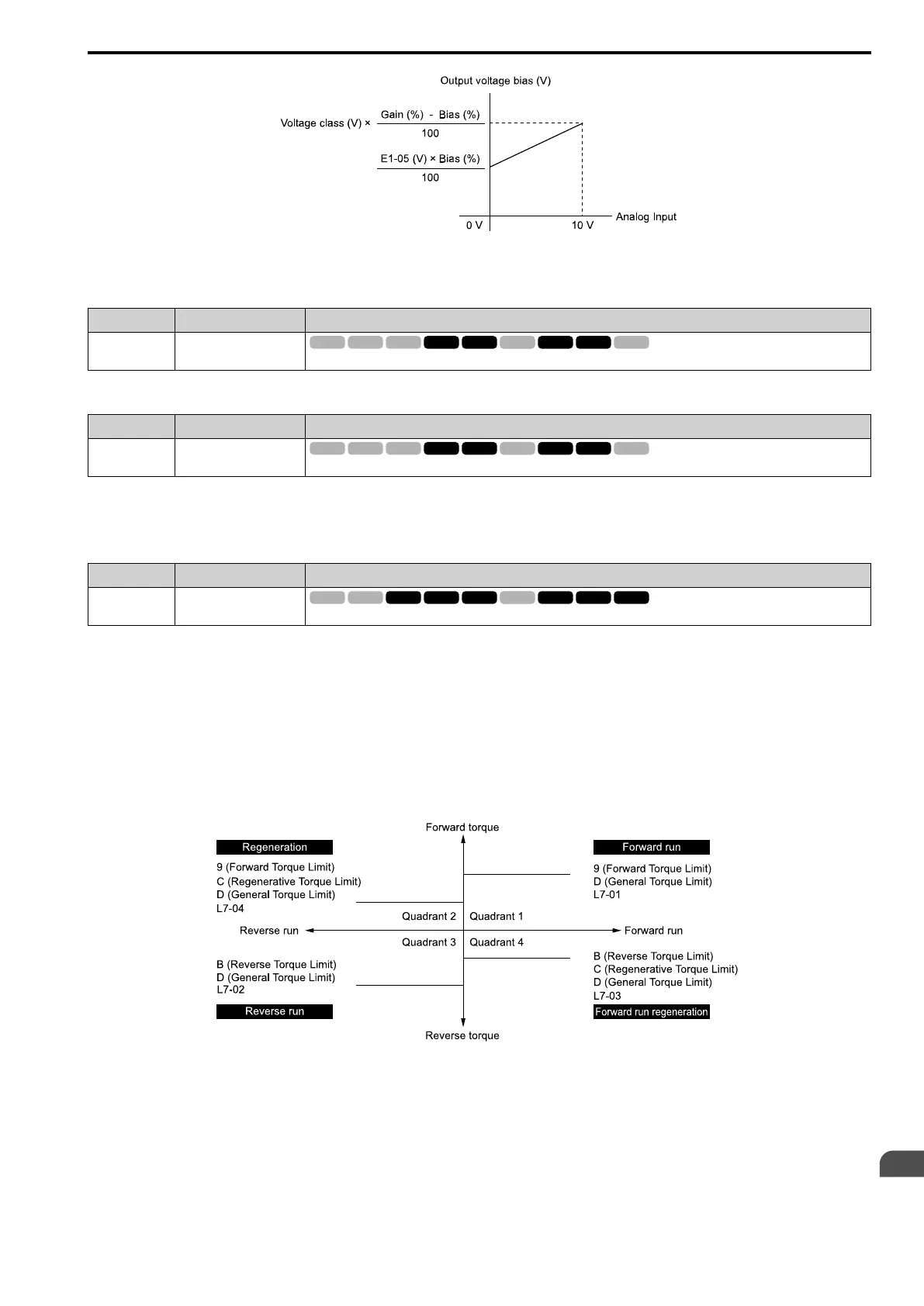 Use L7-01 to L7-04 [FW Torque Limit to RV Reg. TrqLimit] to set each of the 4 torque limit quadrants.
