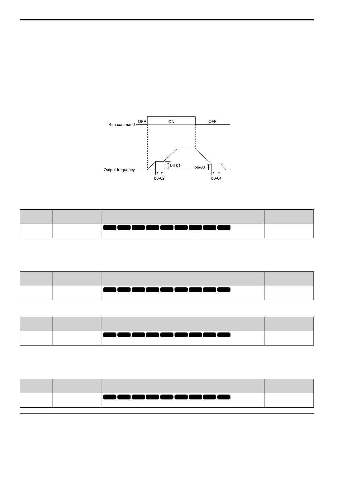 When the drive accelerates to the output frequency set in b6-01, it holds that frequency for the time set in b6-02